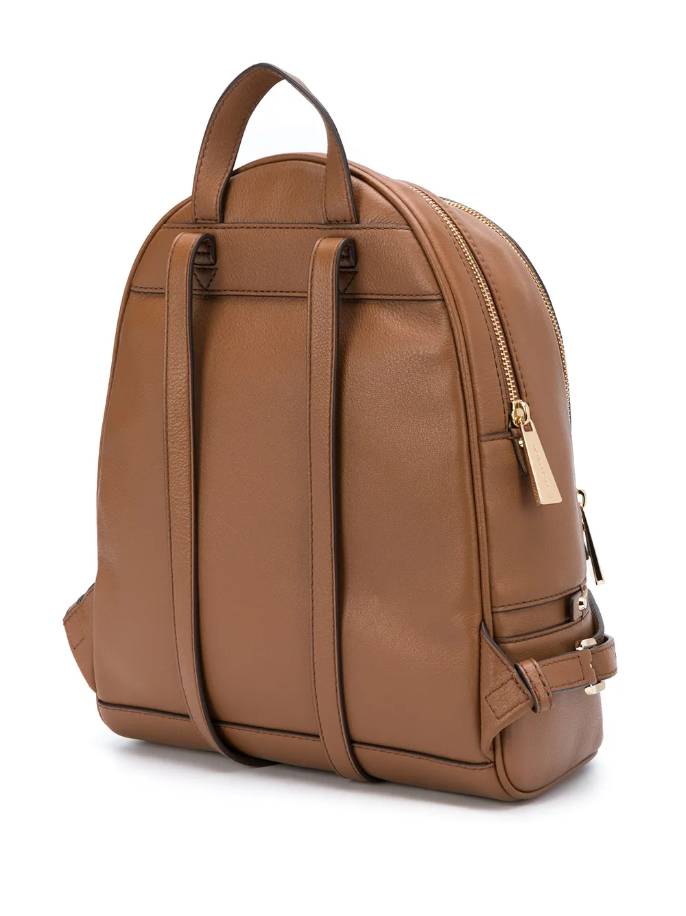 Металлический логотип, золотистая фурнитура, круглая верхняя ручка, застежка на молнии спереди и регулируемые лямки. Цвет: коричневый.