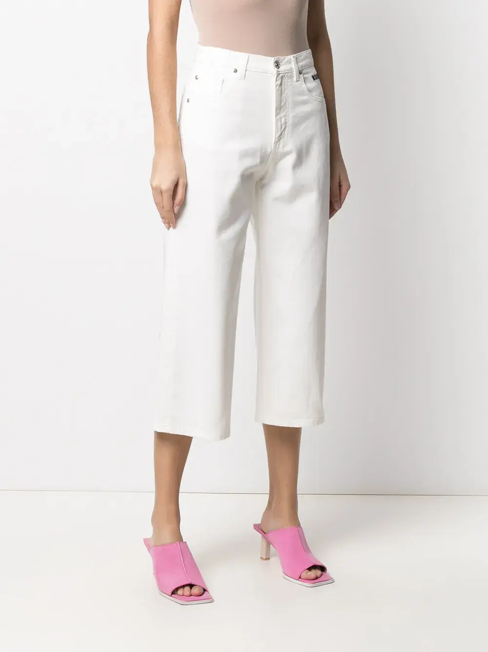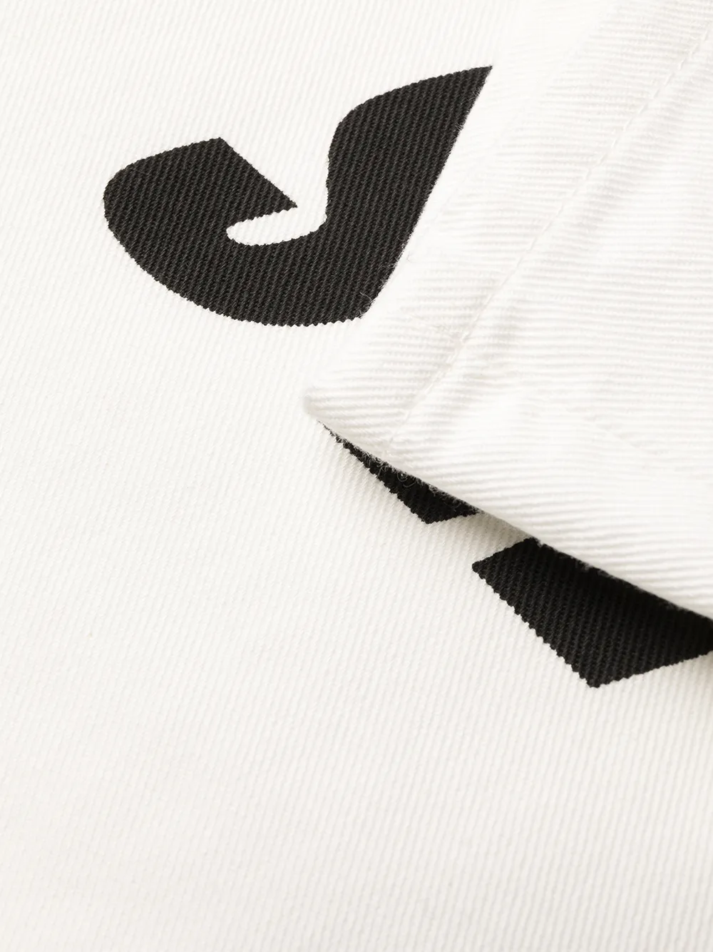 Вышитый логотип, нашивка с логотипом сзади, свободный крой, укороченная длина, застежка на молнии и пуговице спереди и классическая пятикарманная модель. Цвет: белый.