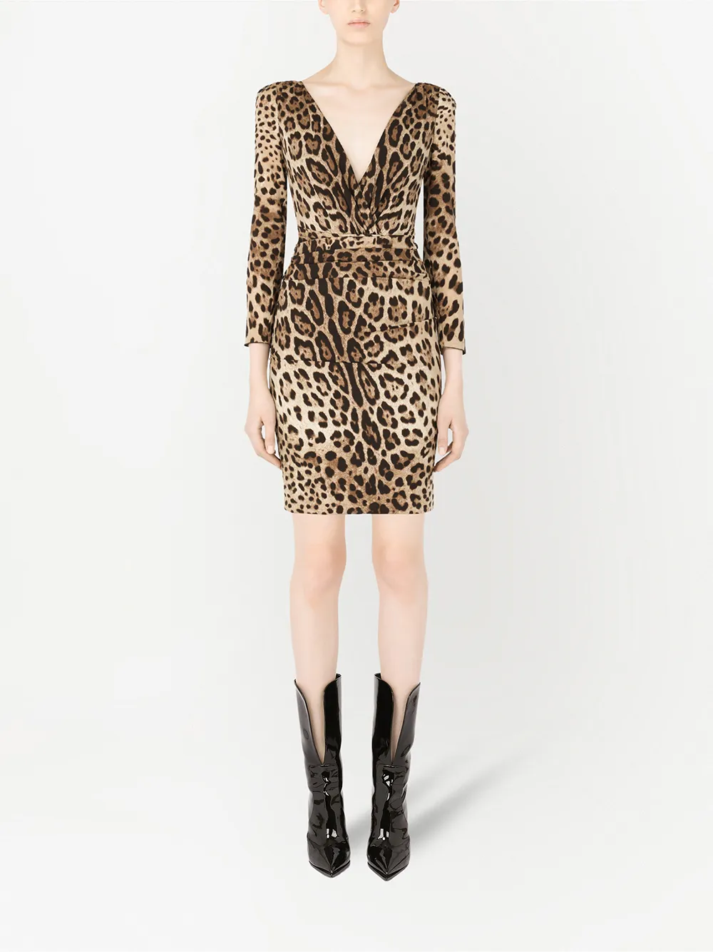 Платье с леопардовым принтом DOLCE & GABBANA, нейтральный
