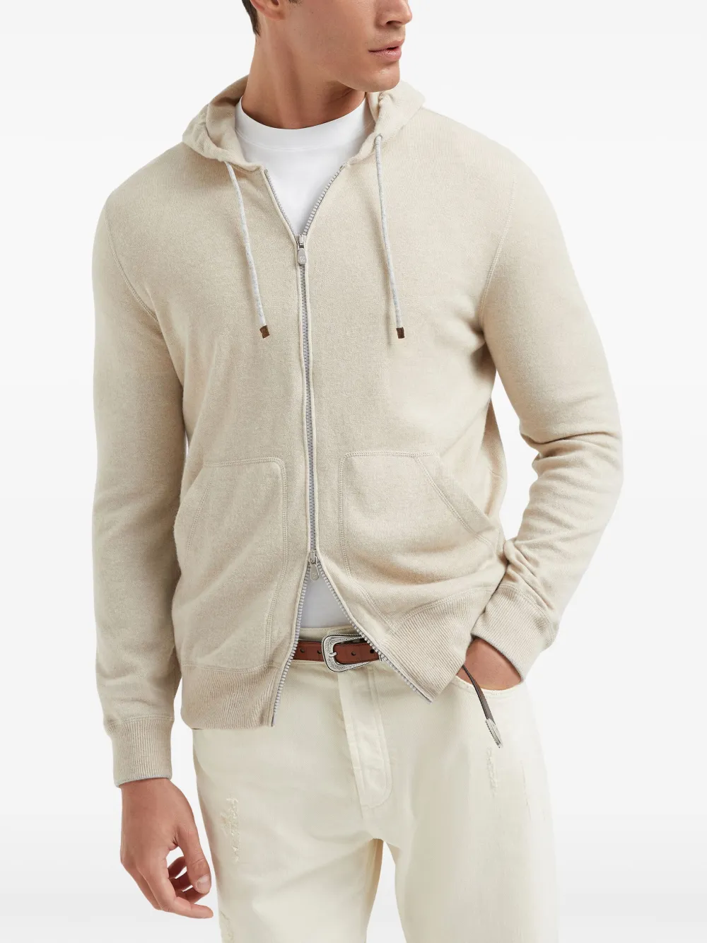 Кашемировое худи на молнии Brunello Cucinelli, нейтральный
