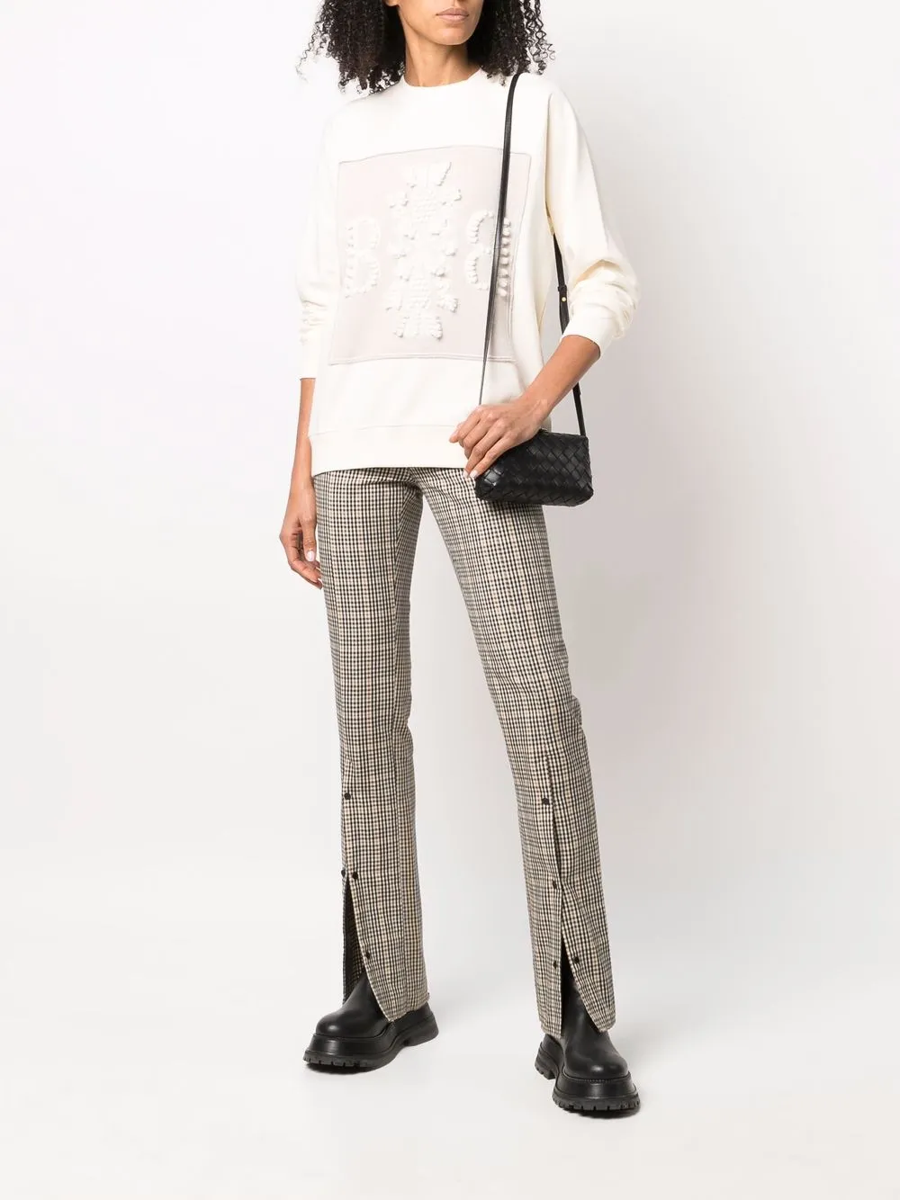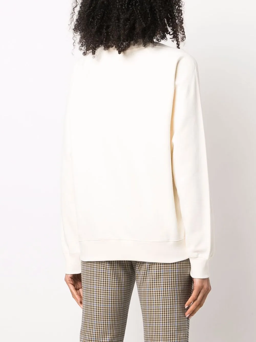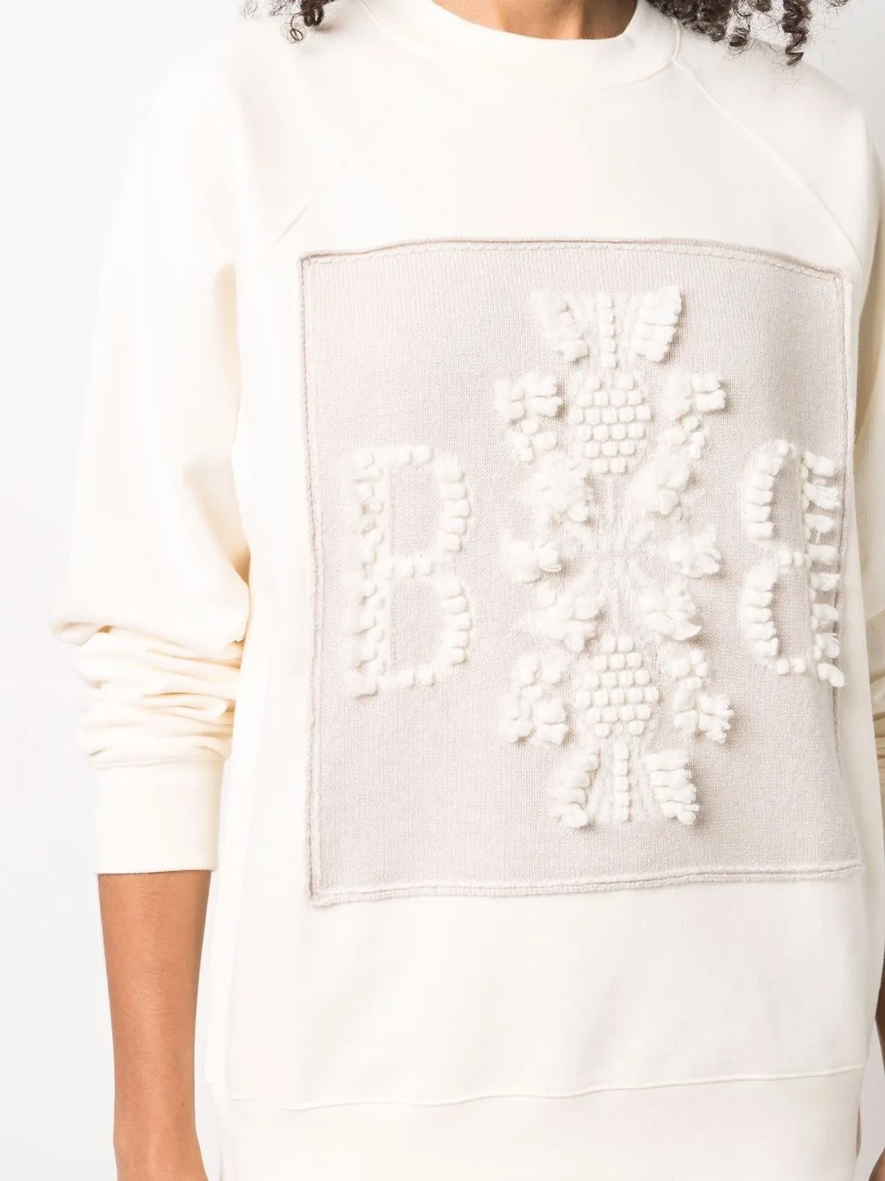 Детали в рубчик, выгравированный логотип, круглый вырез, длинные рукава и прямой подол. Цвет: белый.