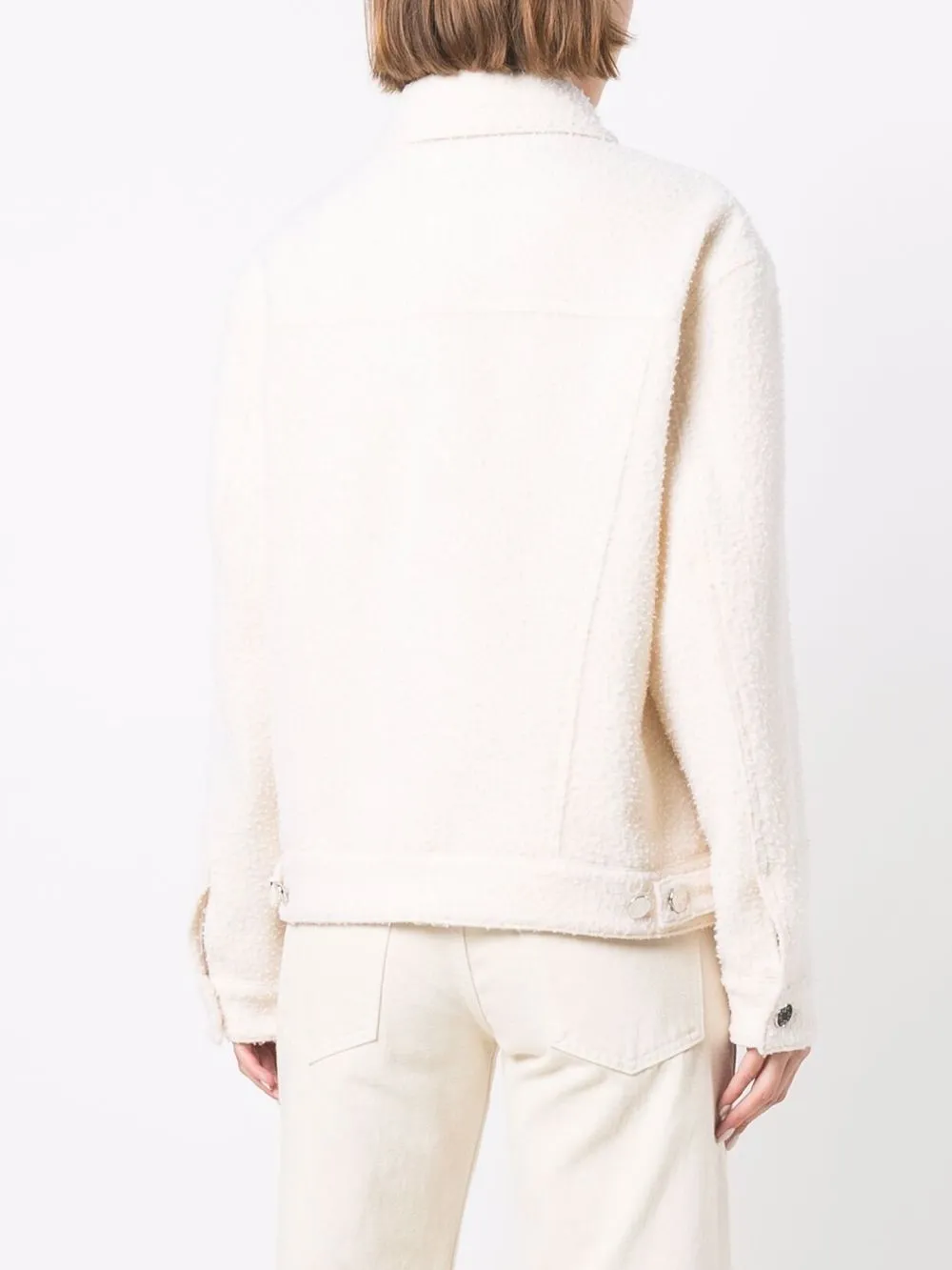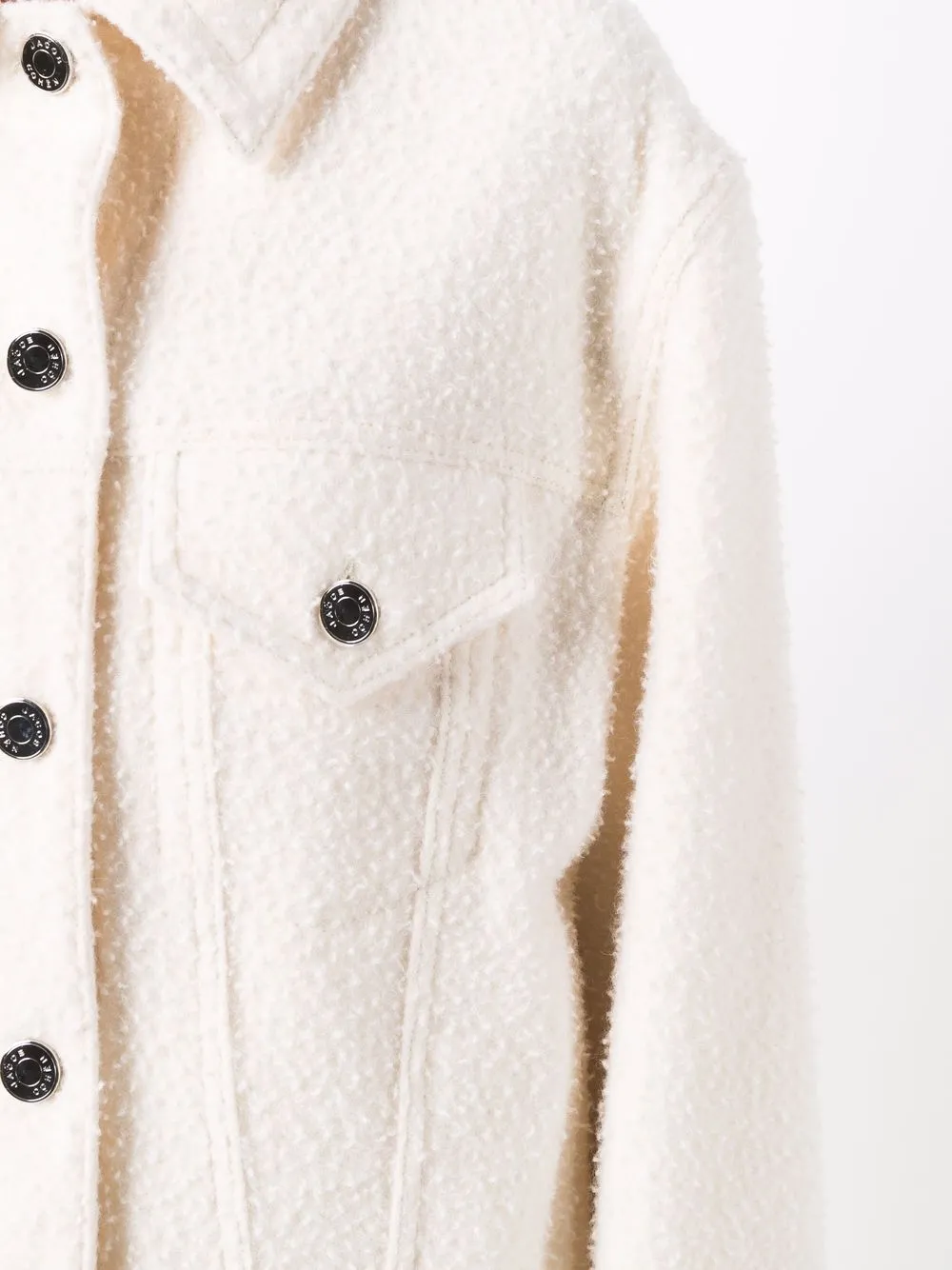 Фактурная отделка, классический воротник, длинные рукава, нагрудный карман на пуговице и застежка на пуговицах спереди.
