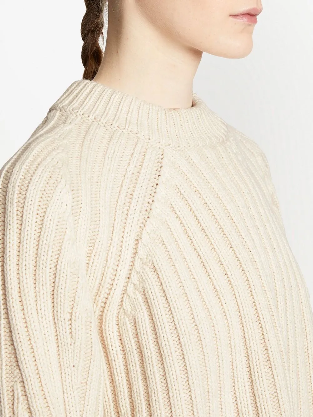 Слоновая кость трикотаж в рубчик круглый вырез рукава реглан укороченная длина