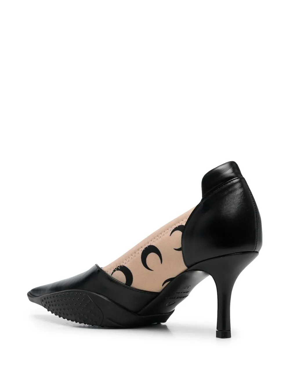 Принт с изображением полумесяца, эластичные боковые панели, заостренный носок, модель без застежки и каблук-шпилька.