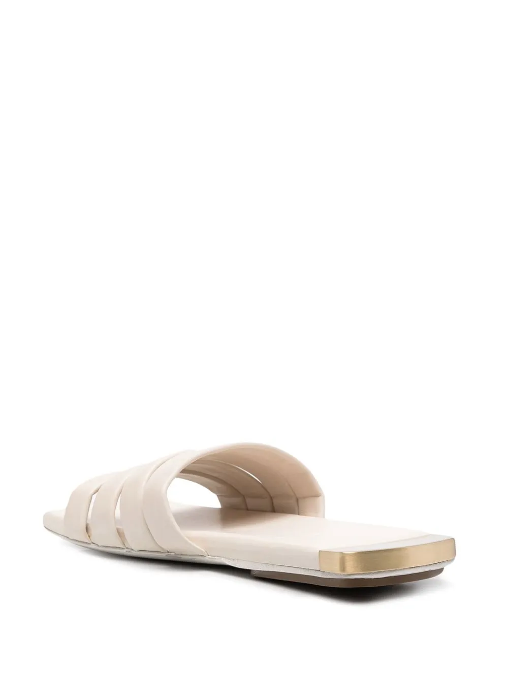 Светло-бежевый, Кожа, квадратный носок, стелька с логотипом и плоская подошва.