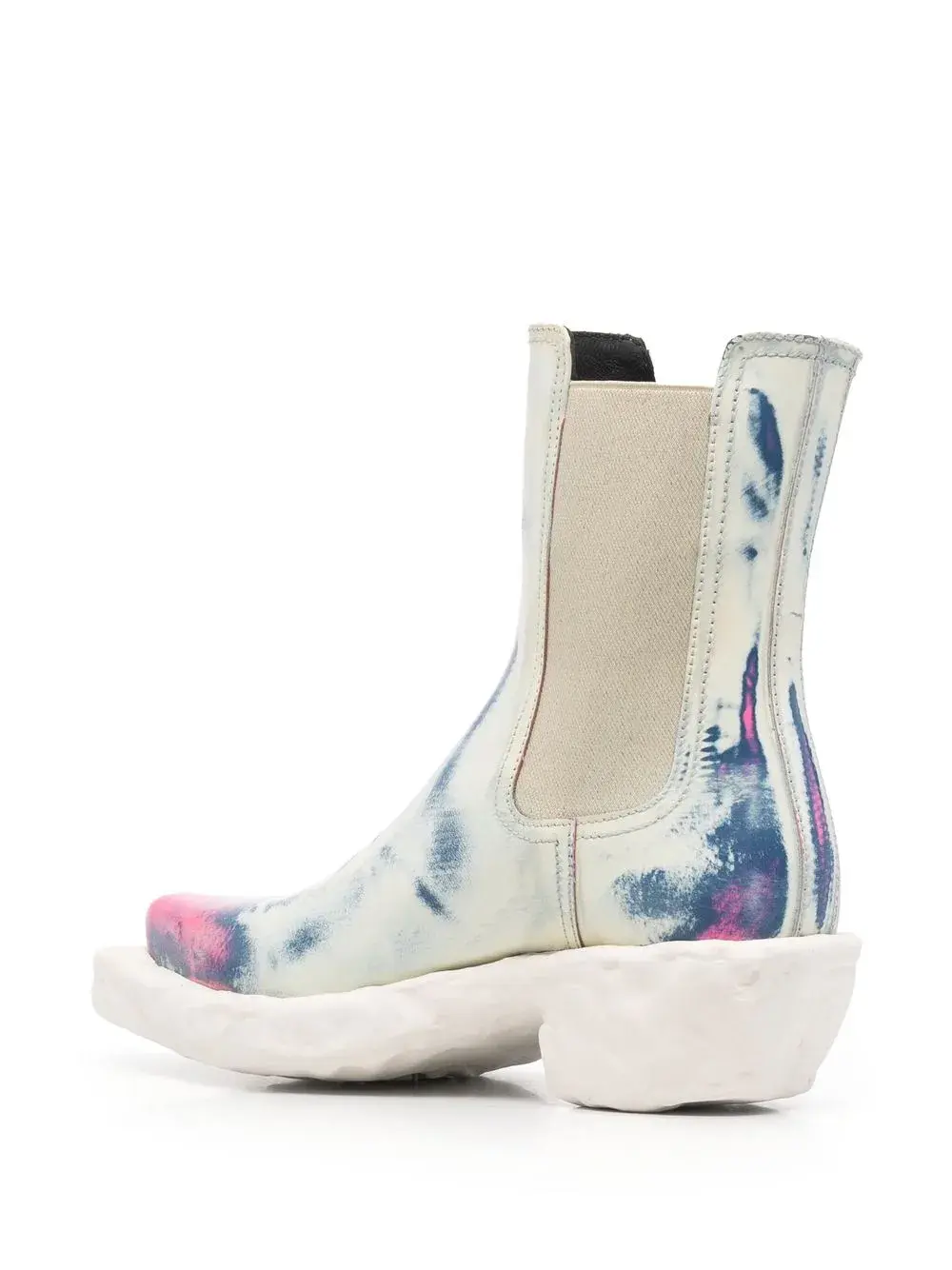 Белый, кожа, сплошной графичный принт, длина по щиколотку, эластичные боковые панели и заостренный носок.