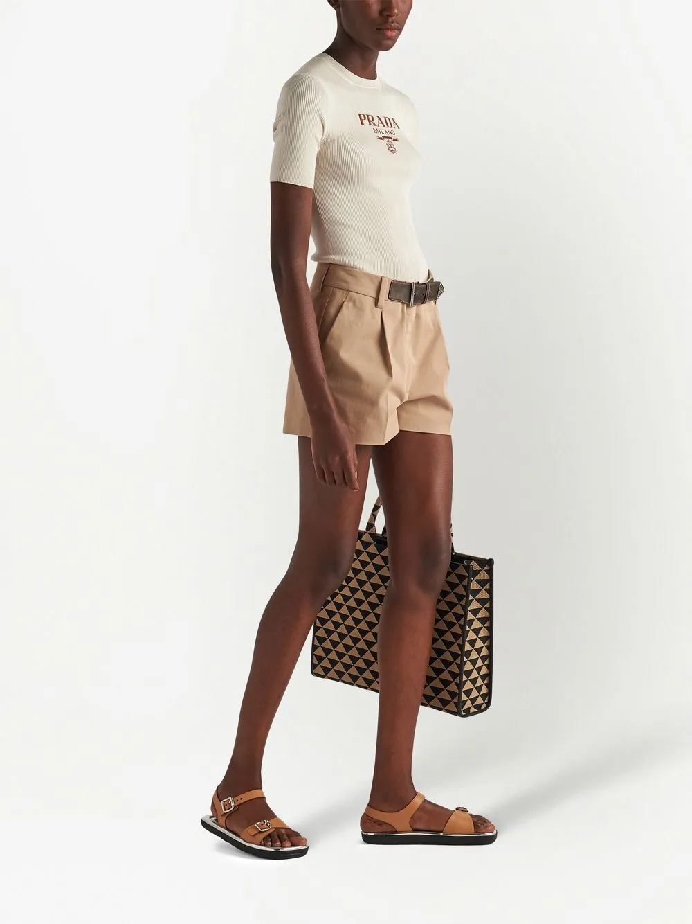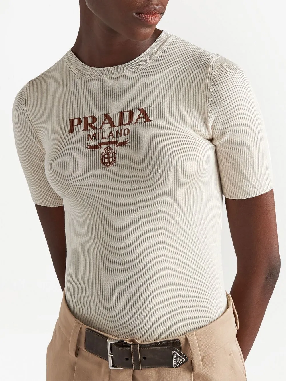 Шелковый джемпер с логотипом Prada, нейтральный 167 449₽