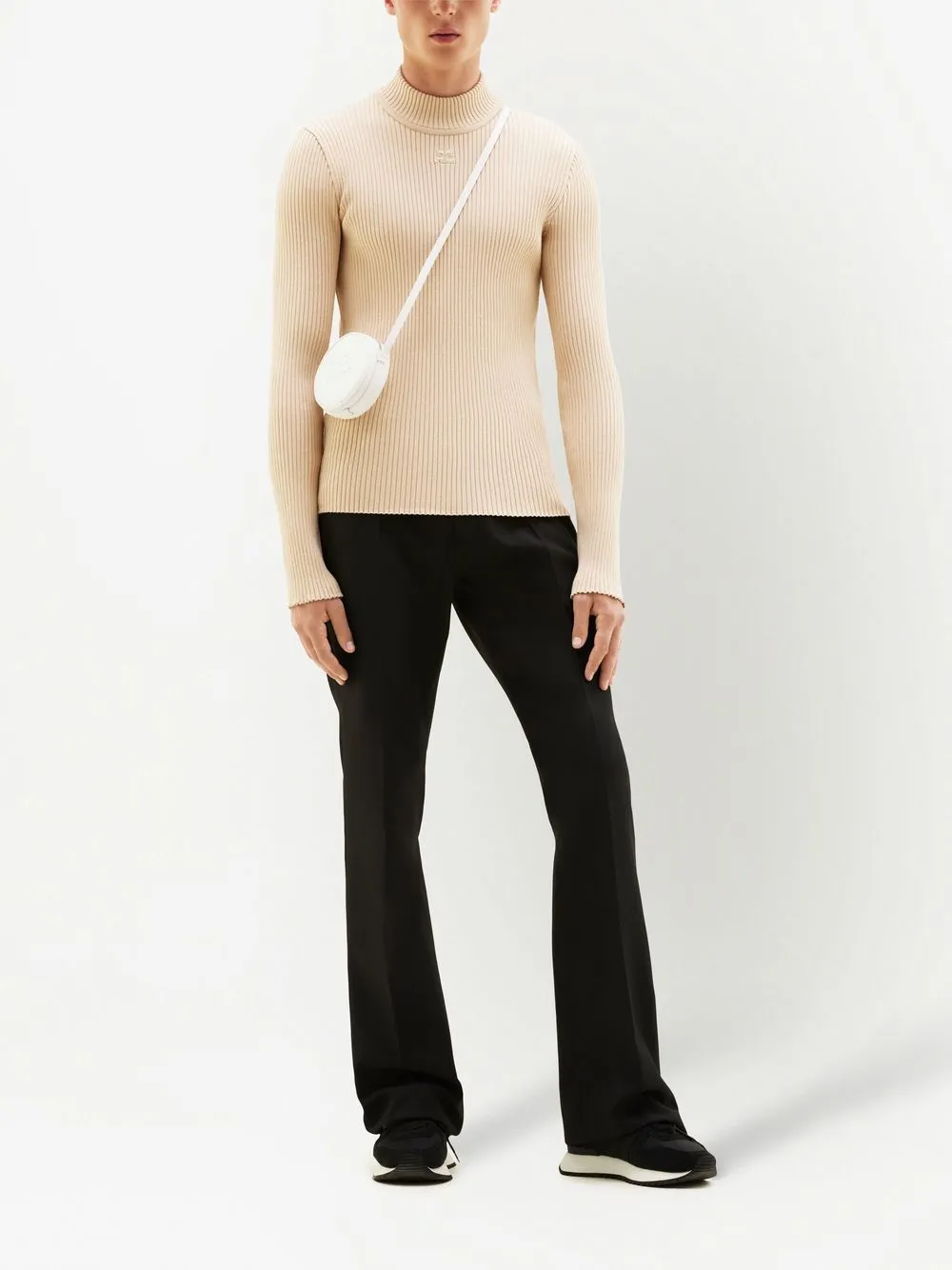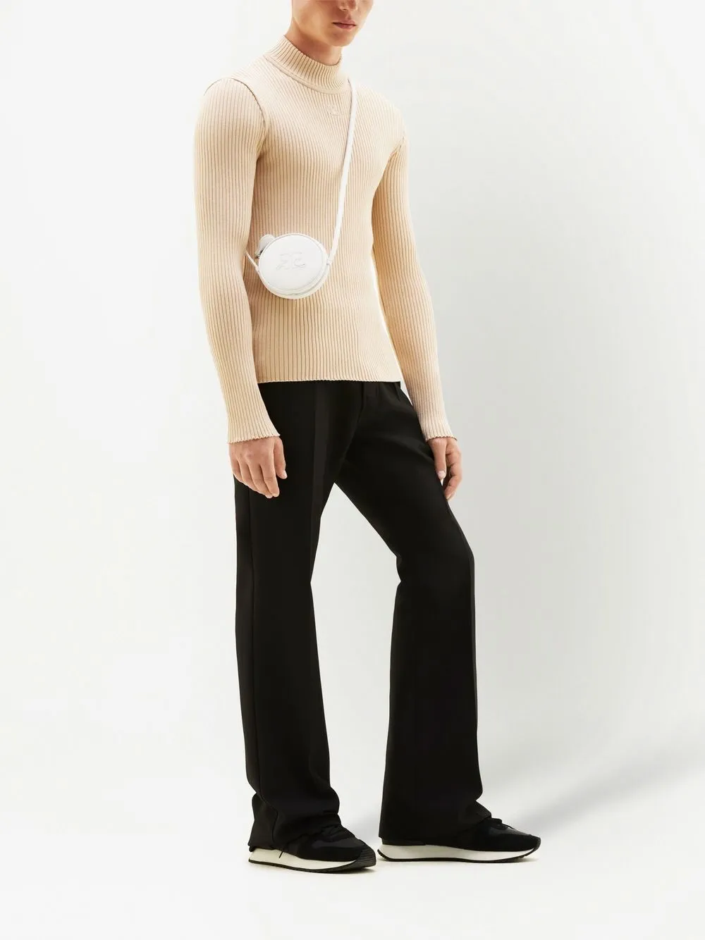 Джемпер в рубчик с высоким воротником Courrèges, нейтральный