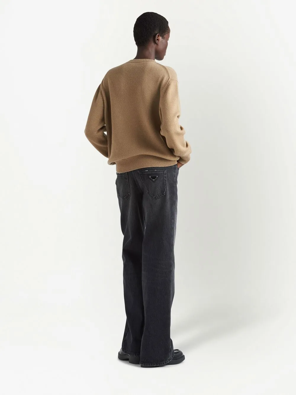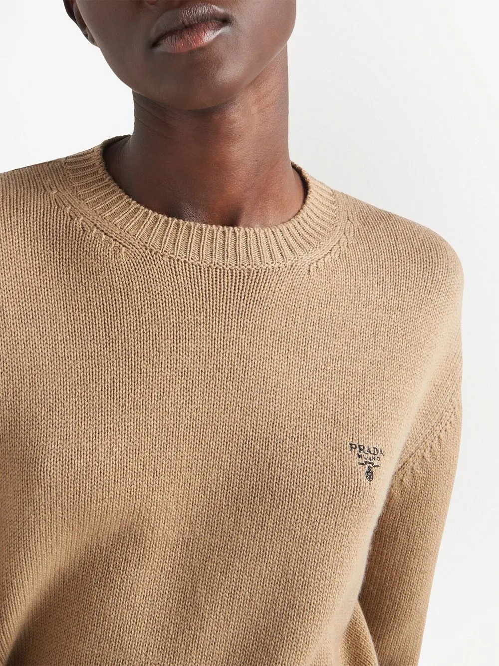 Кашемировый джемпер с логотипом Prada, нейтральный