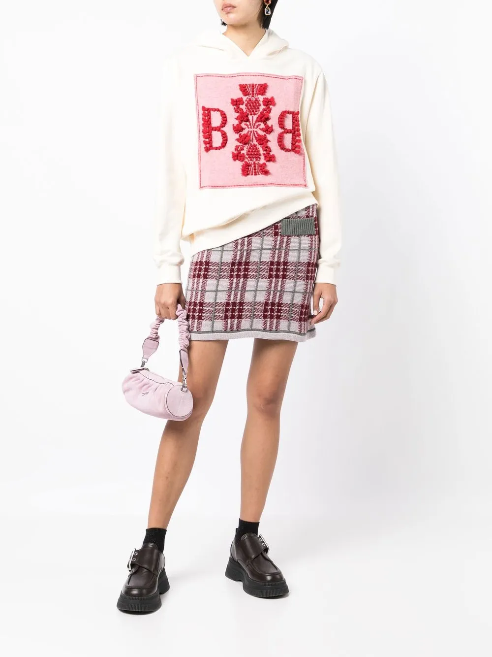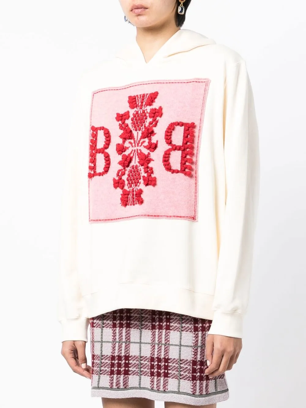 Расцветка Cloud White, ярко-красный, розовый, хлопок, вышивка, классический капюшон, длинные рукава и прямой подол.