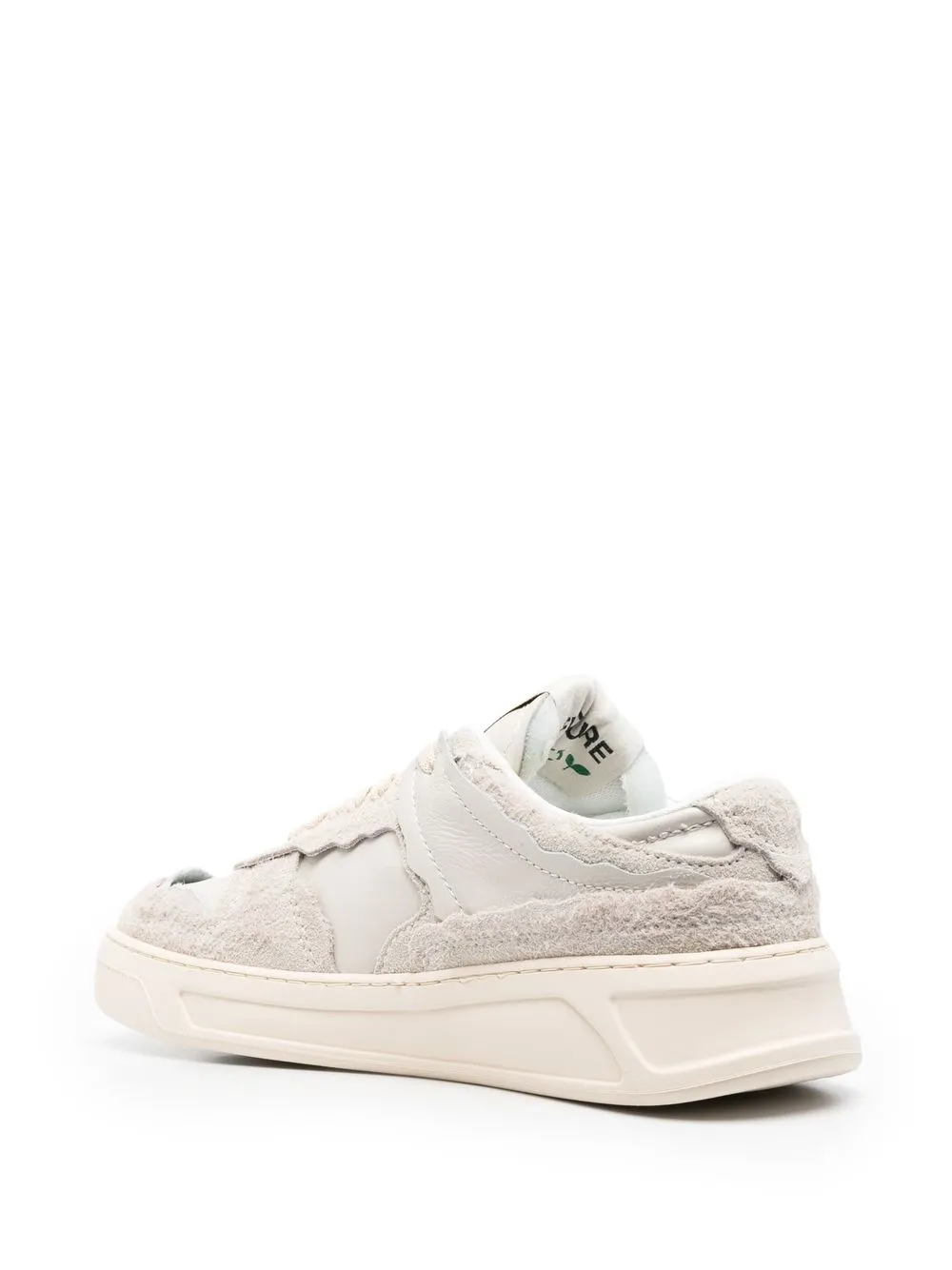 Светло-бежевый, черный, телячья кожа, замша из телячьей кожи, вставки, логотип сбоку, нашивка с логотипом на язычке, закругленный носок, шнуровка спереди и резиновая подошва.