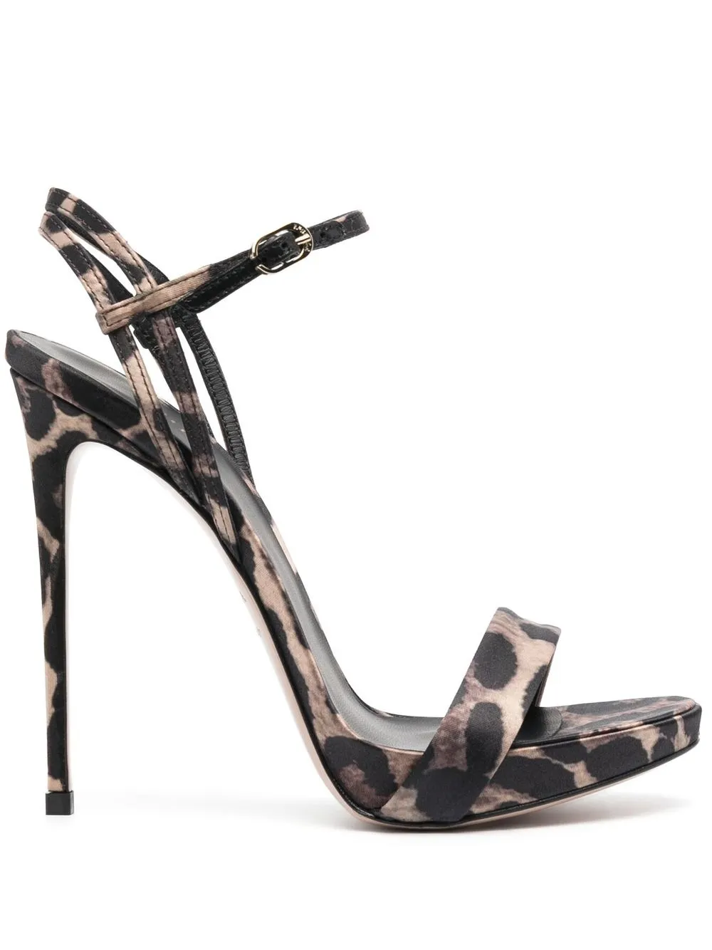 Коричневый, козья кожа, телячья кожа, сатиновый финиш, сплошной леопардовый принт, ремешок на щиколотке с пряжкой, ремешок на палец и каблук на высокой шпильке.