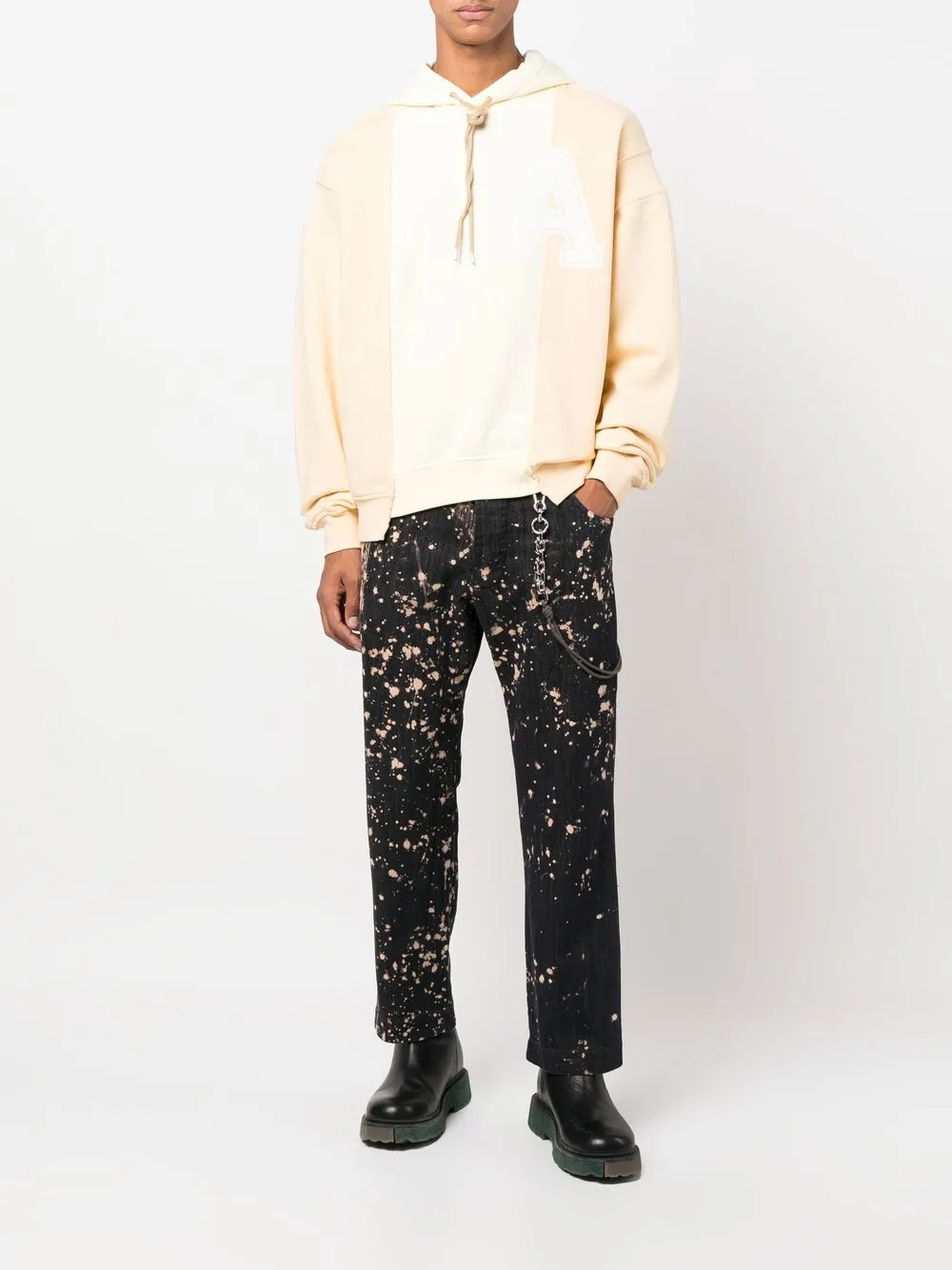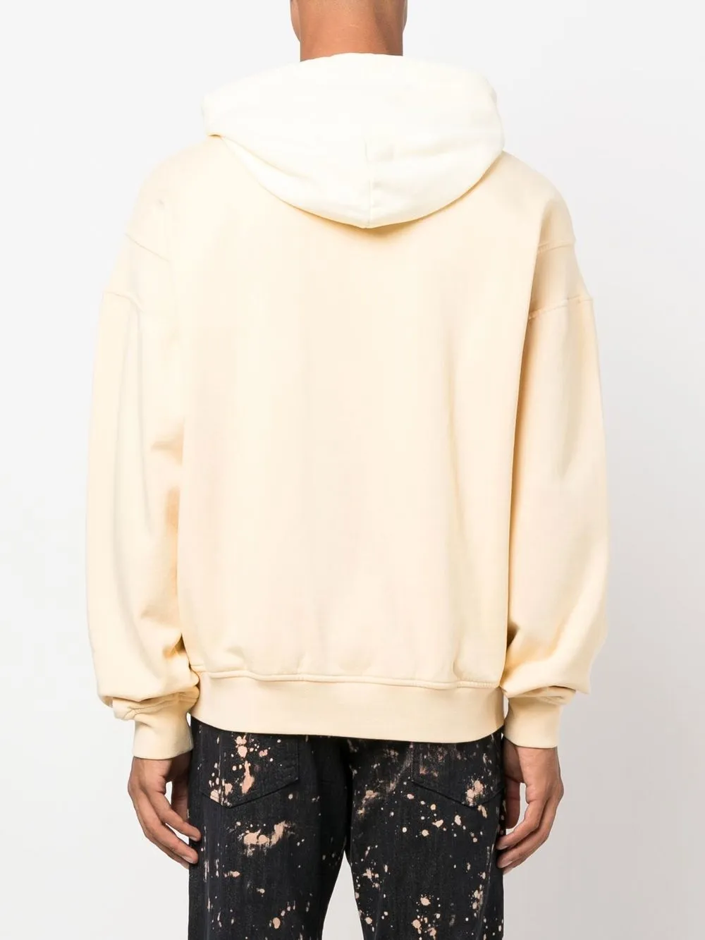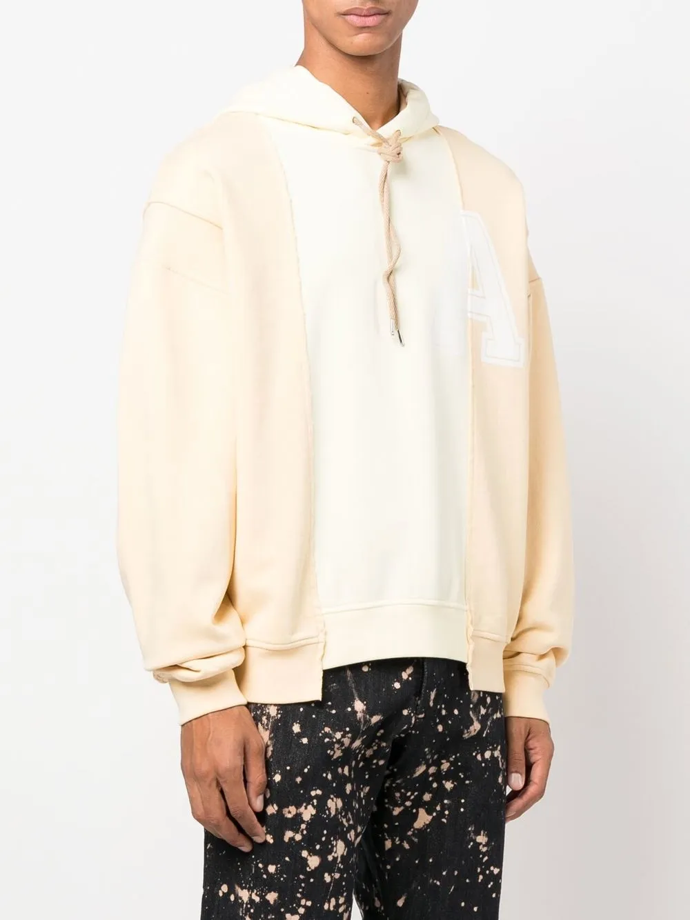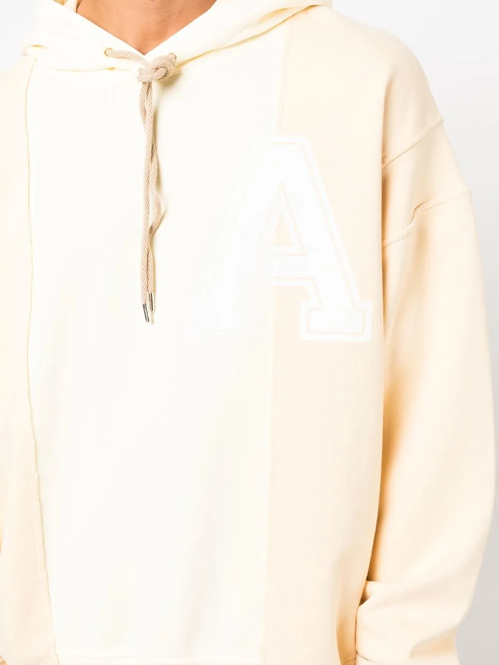 Пастельно-желтый, кремово-белый, хлопок, вставки, принт с логотипом на груди и затягивающийся на шнурок капюшон.