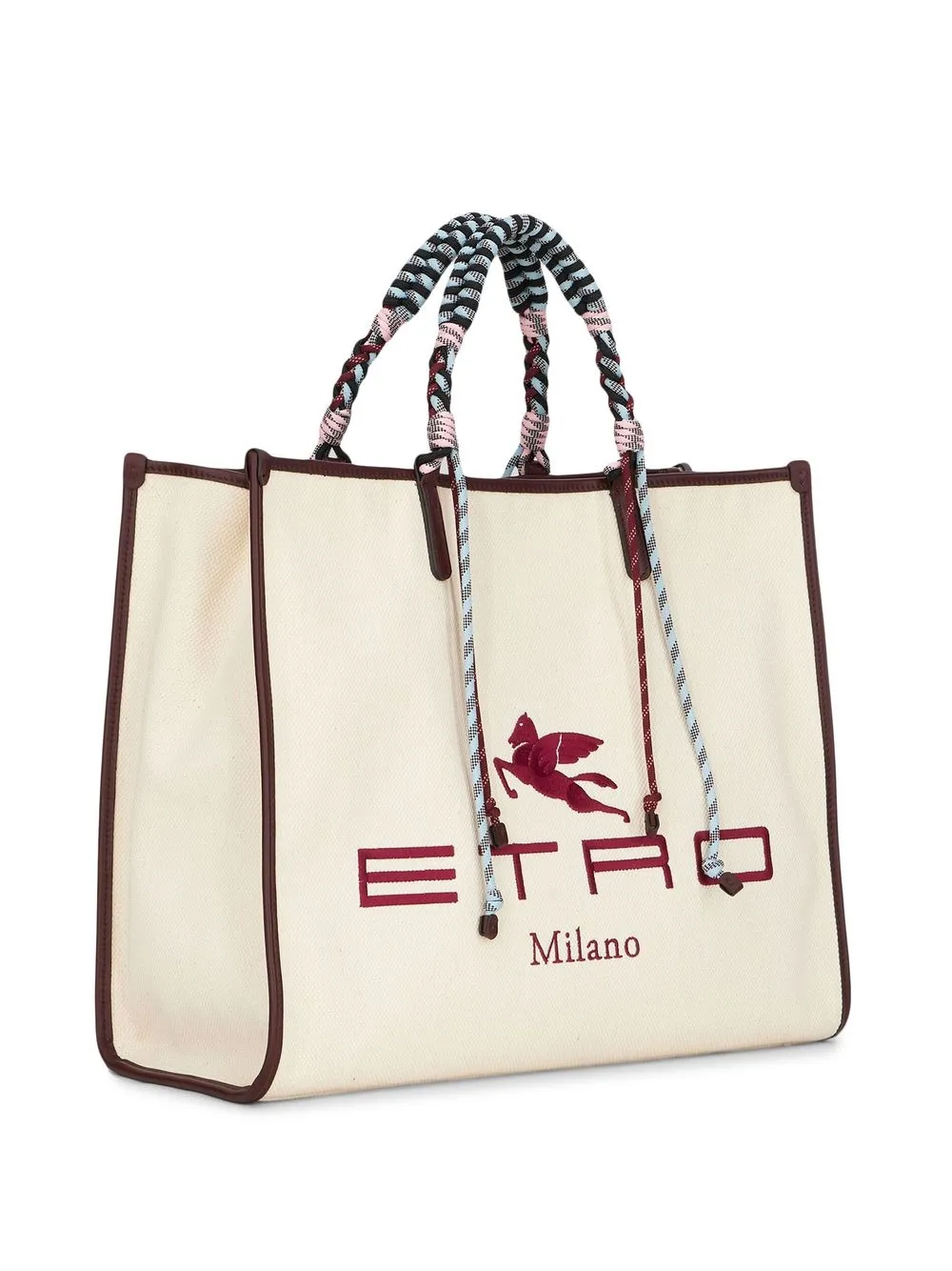 Сумка-тоут с вышитым логотипом ETRO, нейтральный