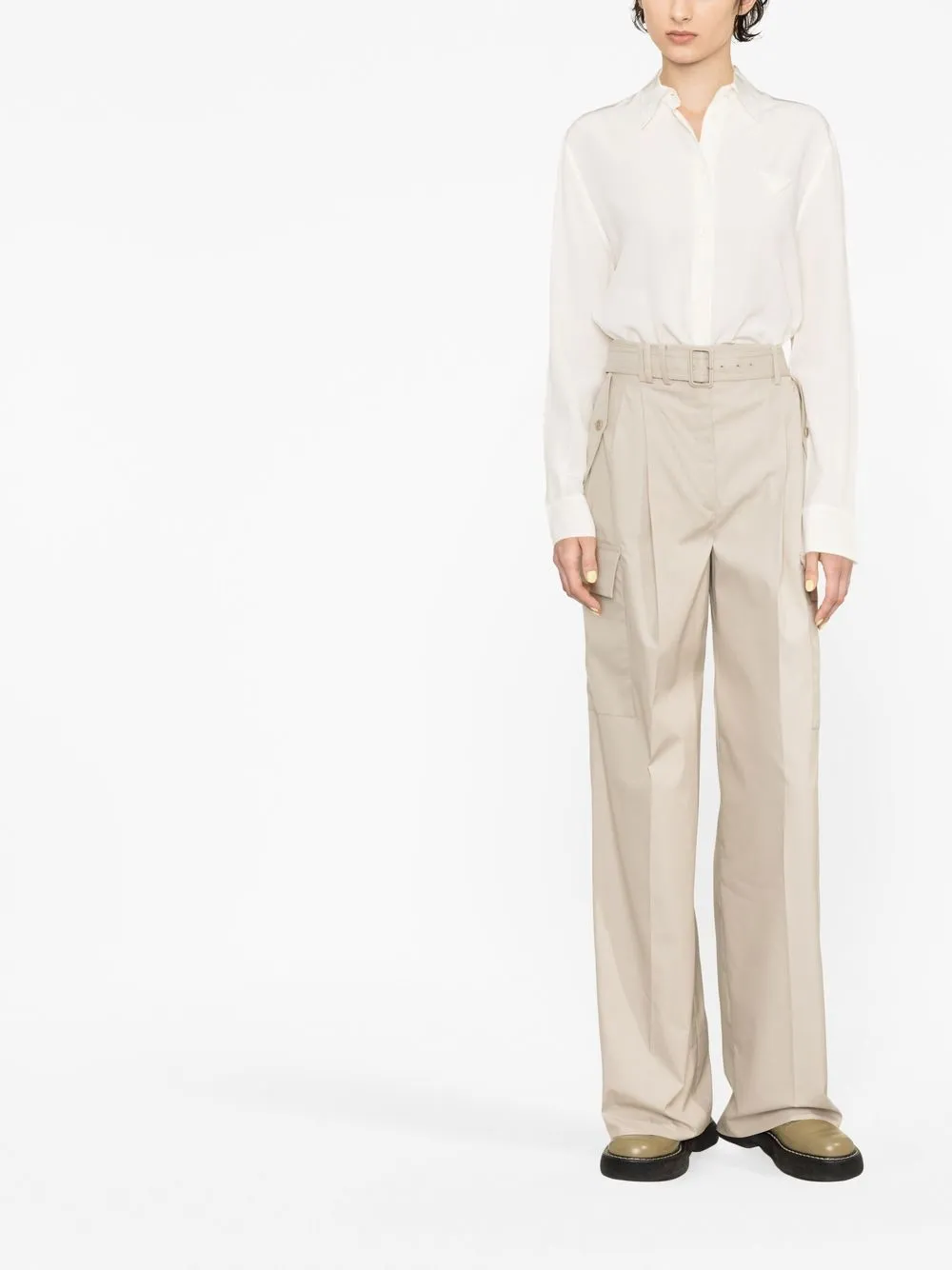 Широкие брюки с поясом Prada, нейтральный
