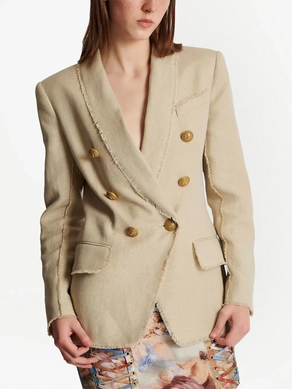Подробнее о товаре: • песочно-бежевый • лен • пенька • заостренные лацканы • двубортная застежка на кнопки • длинные рукава • манжеты на пуговицах • прорезной карман на груди • два передних кармана с клапанами • цельная подкладка • Узнать больше о том, какие товары получают отметку «Ответственный выбор», можно из материала «Как мы оцениваем экологичность и этичность».