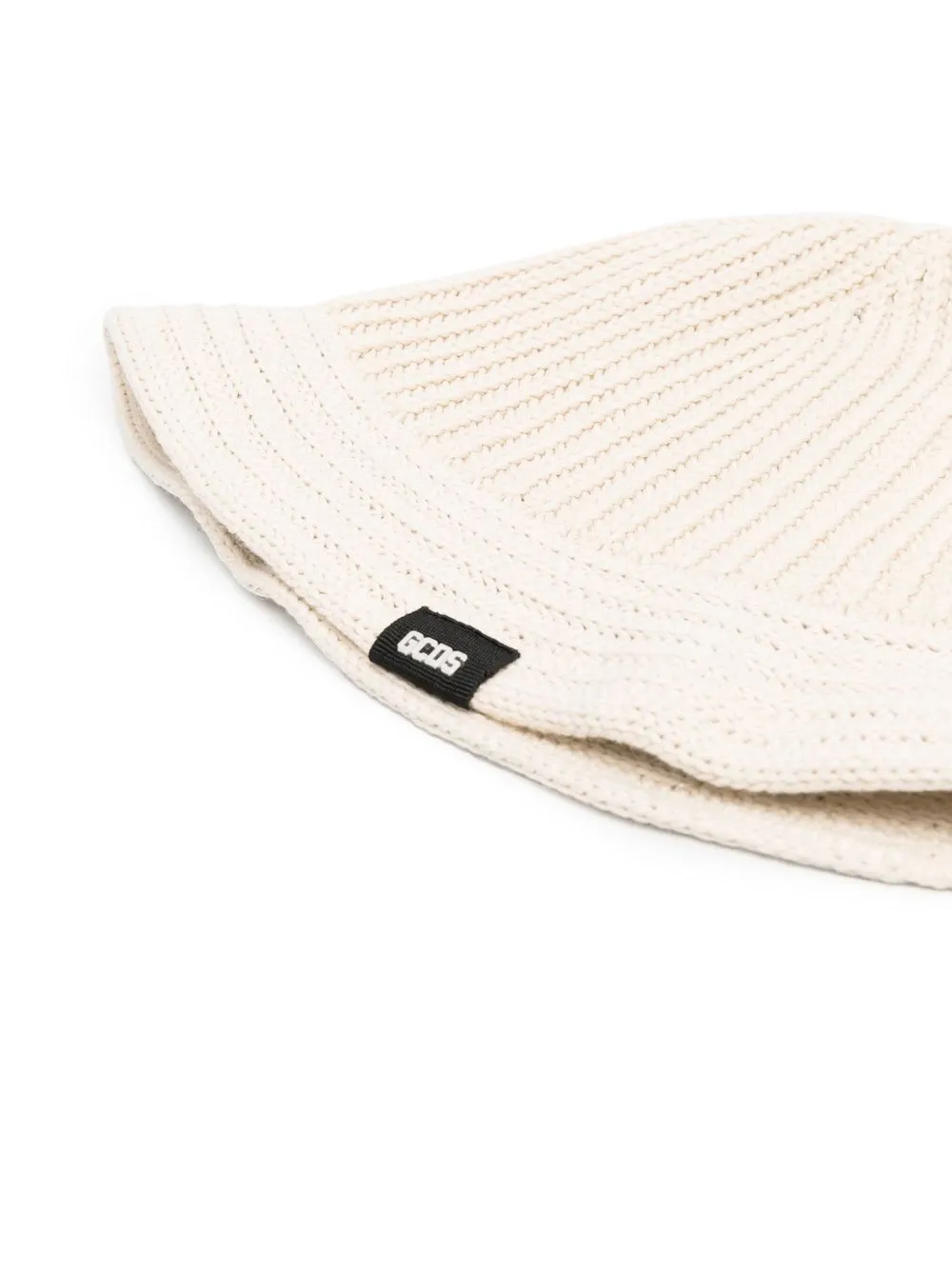 Кремово-белый, смесовый хлопок, трикотаж в рубчик, нашивка с логотипом спереди и гибкие поля.