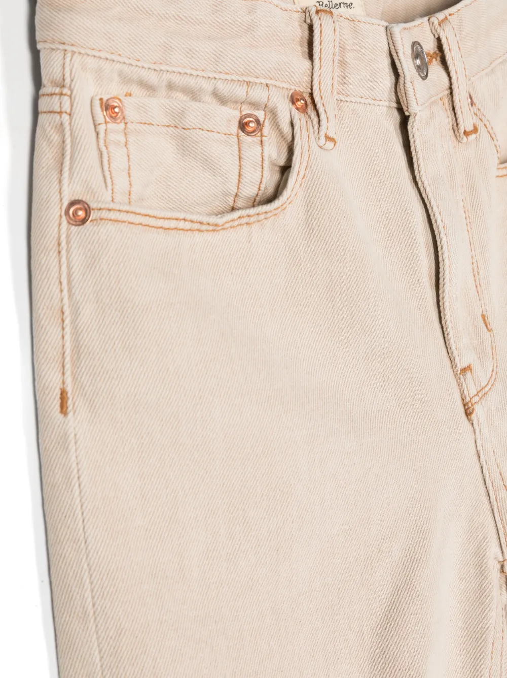 Бежевый, хлопок, контрастная строчка, пять карманов, петли для ремня и нашивка с логотипом сзади. Узнать больше о том, какие товары получают отметку «Ответственный выбор», можно из материала «Как мы оцениваем экологичность и этичность».