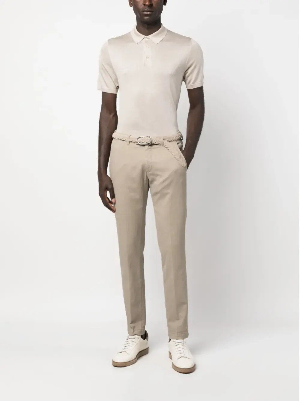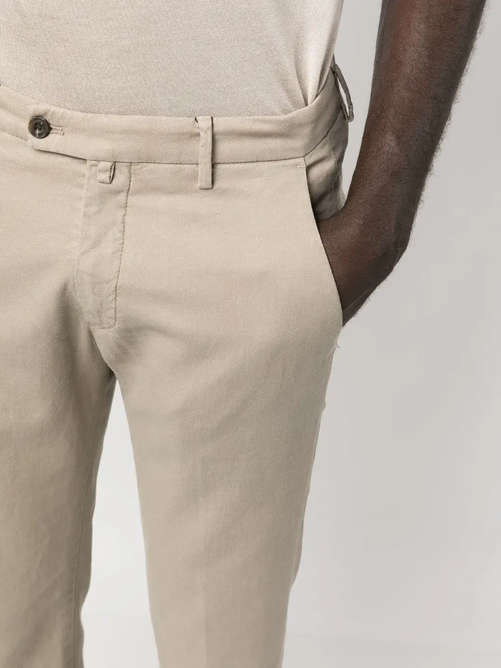 Подробнее о товаре: Серо-бежевый, смесовый хлопок, стрелки, петли для ремня, застежка на молнии и пуговице спереди, два прорезных кармана по бокам, два прорезных кармана сзади и прямой крой. Этот товар как минимум на 50% состоит из материалов, которые признаны более безопасными для окружающей среды, и/или произведены с использованием методов, которые помогают сократить потребление воды и химических веществ. Узнать больше о том, какие товары получают отметку «Ответственный выбор», можно из материала «Как мы оцениваем экологичность и этичность».