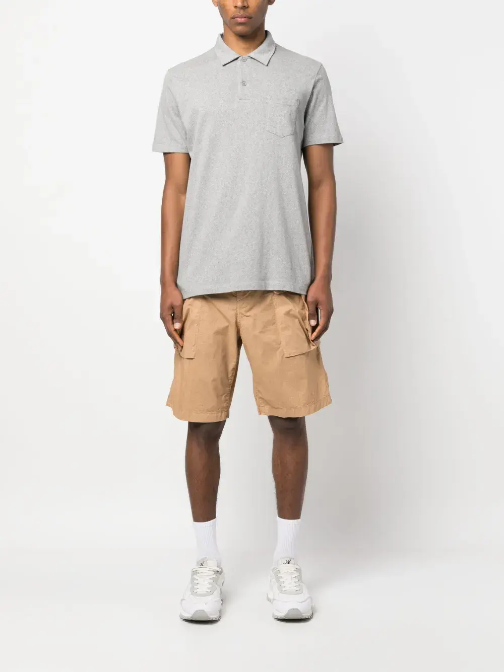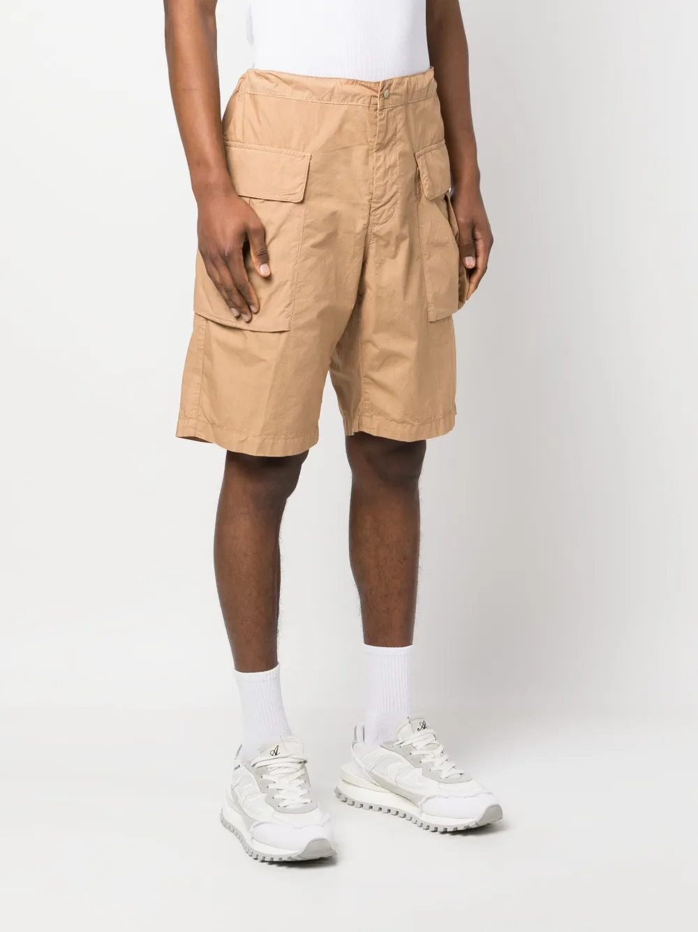 Бежевый, хлопок, стрелки, потайная застежка на молнии и пуговицах, эластичный пояс сзади, два накладных кармана по бокам, два накладных кармана сзади, прямой подол и прямой крой.