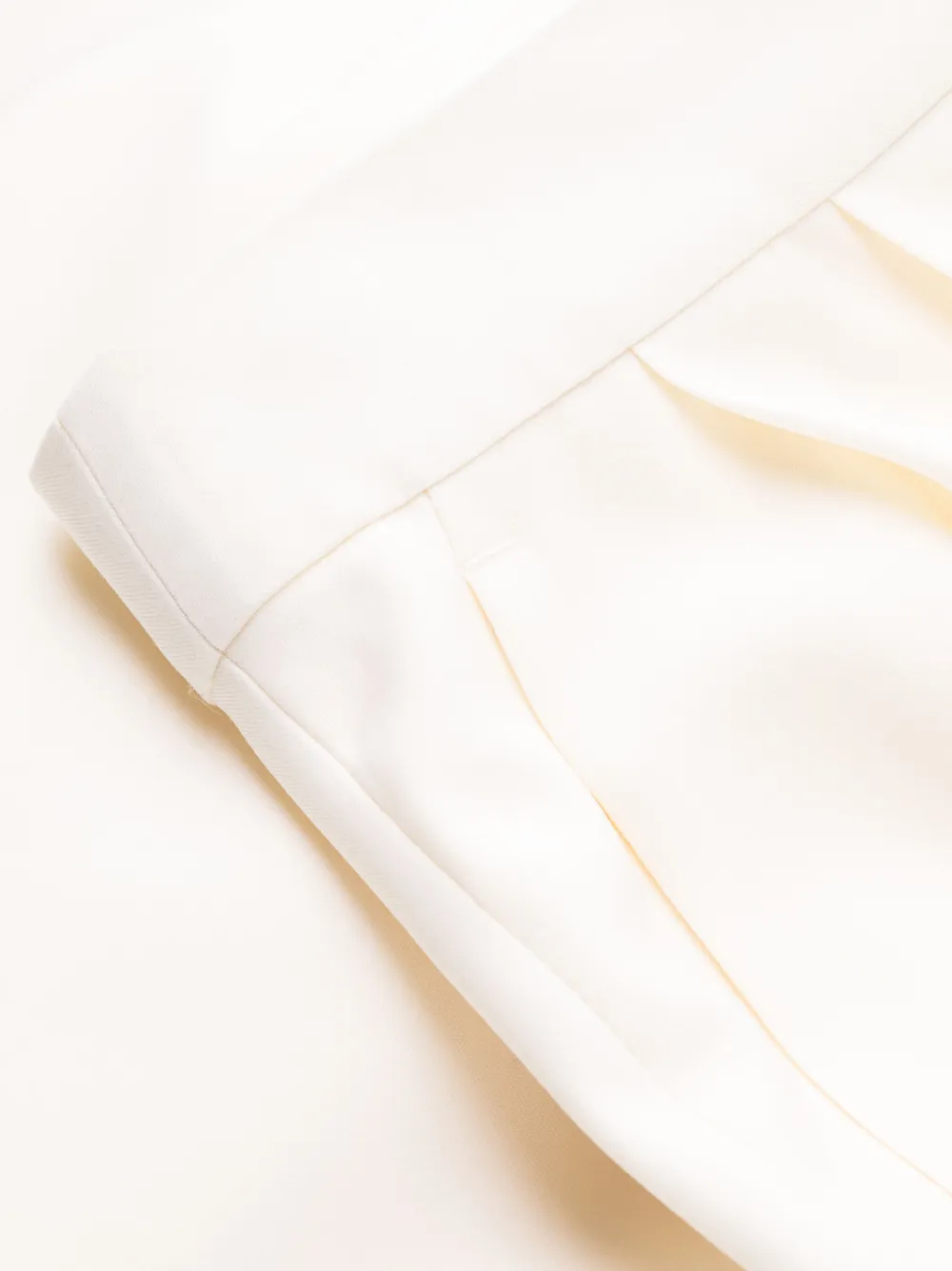 Светло-бежевый, шерсть, классический крой, стрелки, средняя посадка, потайная застежка спереди, широкий крой, подвороты и задние карманы с листочкой.
