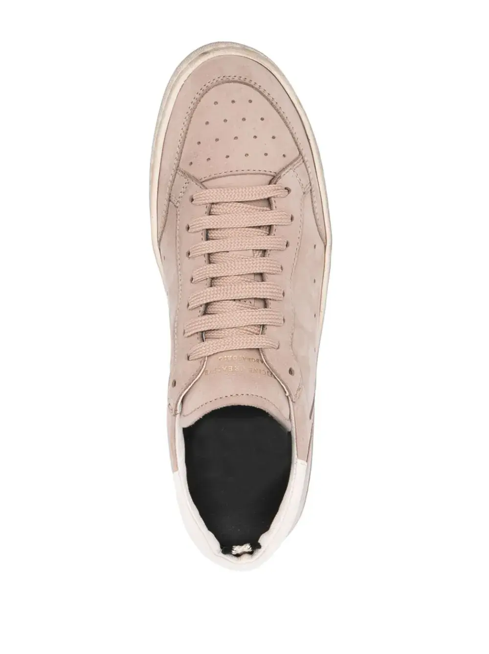 Светло-розовый, замша из телячьей кожи, телячья кожа, вставки, перфорация, язычок с логотипом, золотистый логотип, задник с логотипом, петля для подтягивания сзади, стелька с логотипом, закругленный носок, шнуровка спереди, высота по щиколотку и плоская резиновая подошва.