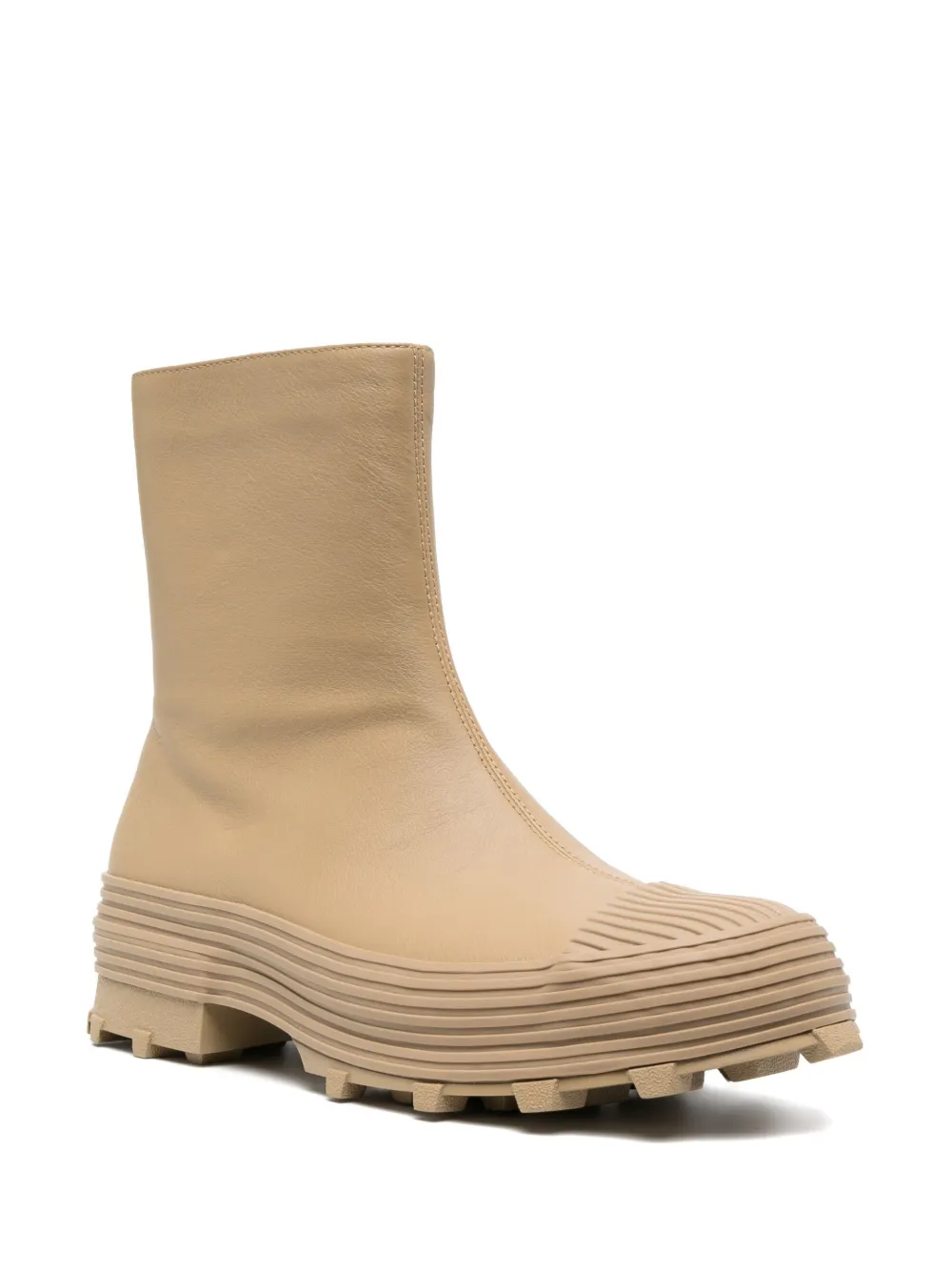 Песочно-бежевый, телячья кожа, гладкая текстура кожи, строчка в тон, носок в тон, закругленный носок, застежка на молнии сбоку, длина до середины голени, массивная резиновая подошва и низкий блочный каблук. Кожа в составе этого товара сделана на фабрике, сертифицированной организациями Leather Working Group (LWG) или ICEC. Это гарантирует, что производитель минимизировал негативное влияние материала на окружающую среду. Узнать больше о том, какие товары получают отметку «Ответственный выбор», можно из материала «Как мы оцениваем экологичность и этичность».