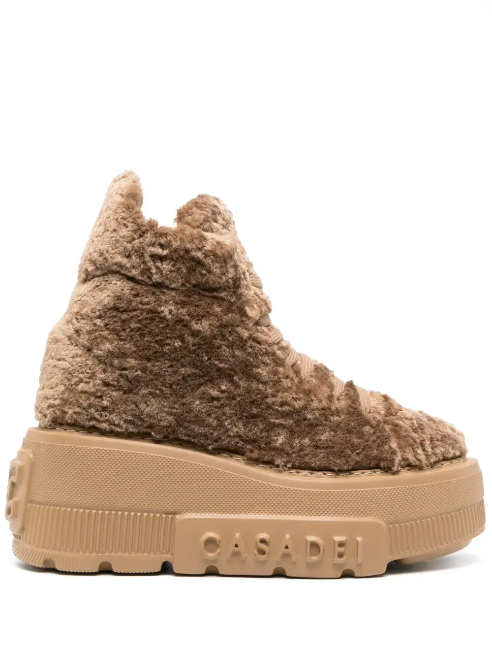 Карамельный, логотип на подошве, материал c флисовой текстурой, шнуровка спереди, закругленный носок, стелька с логотипом и плоская подошва.