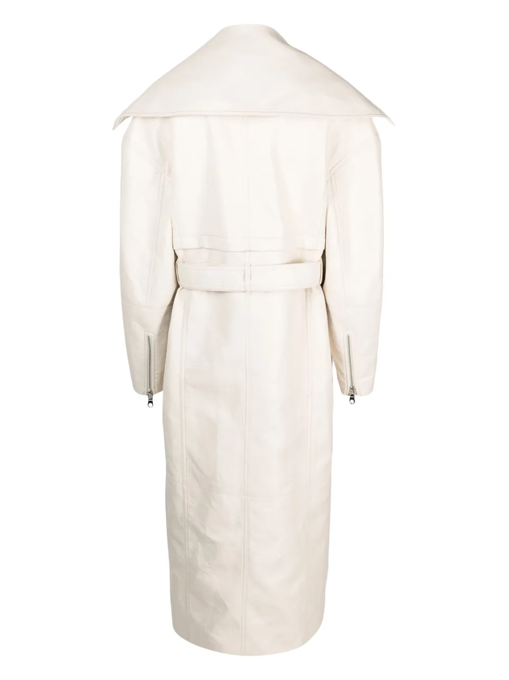 Подробнее о товаре: Кремовый, телячья кожа, гладкая текстура кожи, серебристая фурнитура, зазубренные лацканы, застежка на кнопках спереди, застежка на молнии, длинные рукава, манжеты на молнии, петли для ремня, передний карман с клапаном, два кармана на молнии по бокам и прямой подол. . Узнать больше о том, какие товары получают отметку «Ответственный выбор», можно из материала «Как мы оцениваем экологичность и этичность».