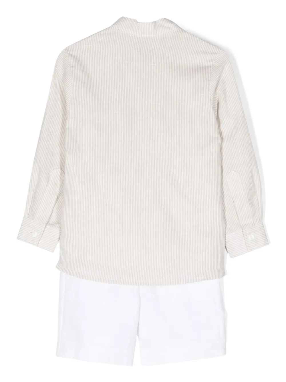 Подробнее о товаре: Бежевый, серовато-белый, смесь хлопка и льна, узор в тонкую полоску, воротник-стойка, короткая застежка на пуговицах спереди, длинные рукава, манжеты на пуговицах, прямой подол, петли для ремня, застежка на молнии и пуговице спереди, прямой крой, два вшитых кармана по бокам и длина по колено. Этот товар как минимум на 50% состоит из материалов, которые признаны более безопасными для окружающей среды, и/или произведены с использованием методов, которые помогают сократить потребление воды и химических веществ. Узнать больше о том, какие товары получают отметку «Ответственный выбор», можно из материала «Как мы оцениваем экологичность и этичность».