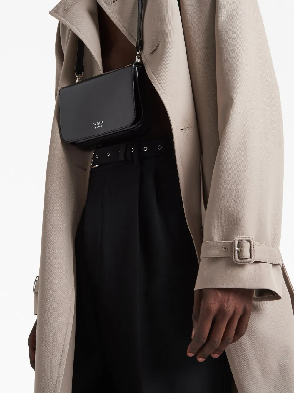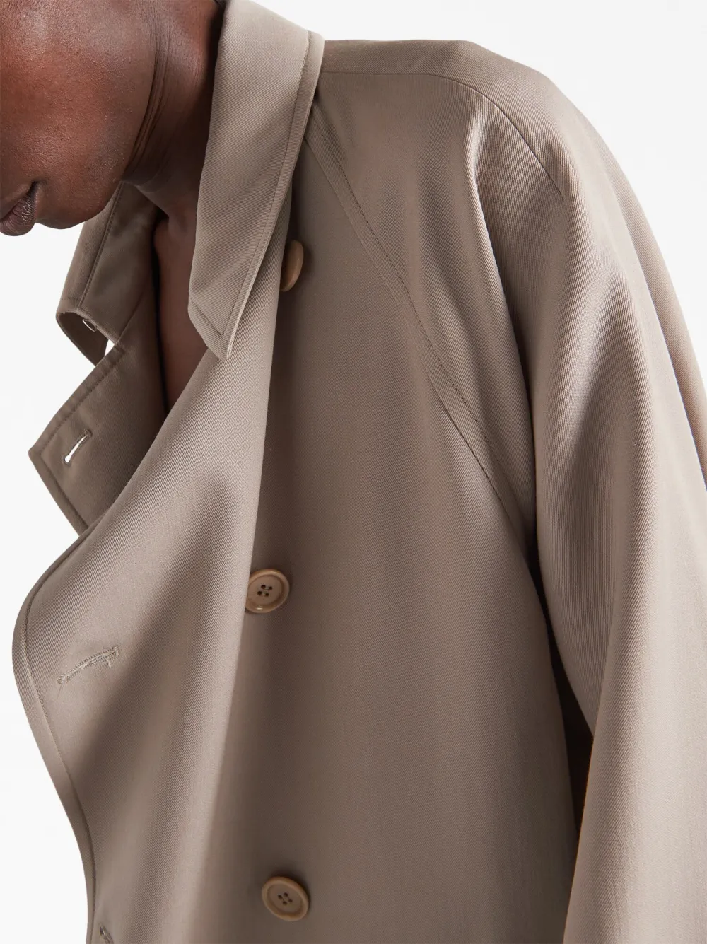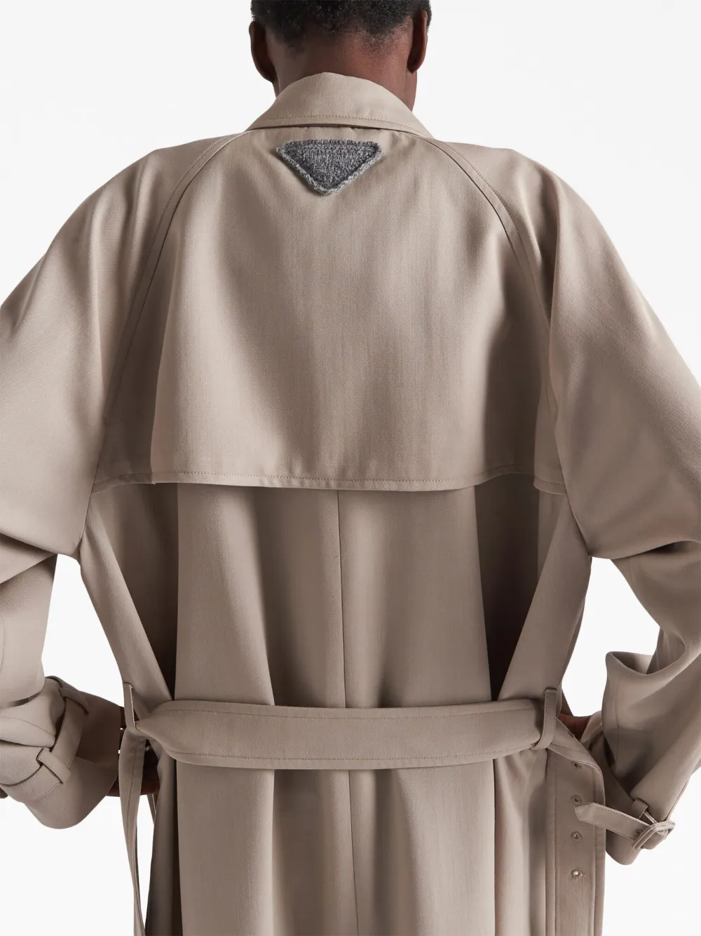 Двубортный шерстяной тренч Prada, нейтральный