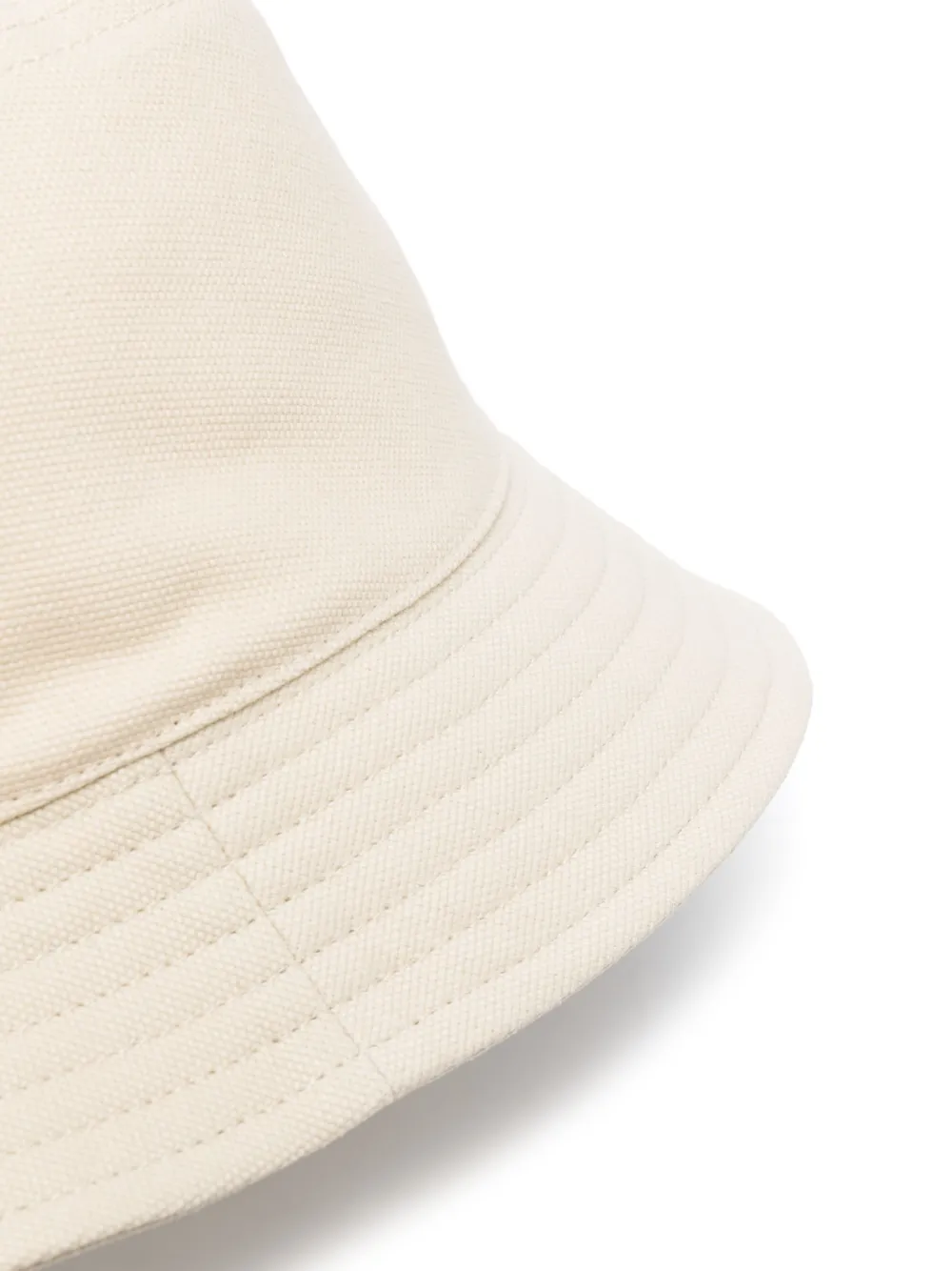 Кремово-белый, хлопок, вышитый логотип спереди, плоская тулья, широкие опущенные поля и модель без застежки.