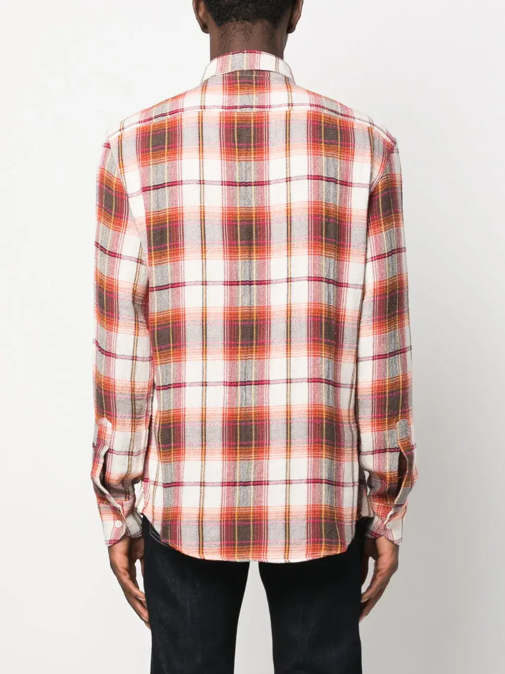 Клетчатый узор и рукава с манжетами на пуговицах.
