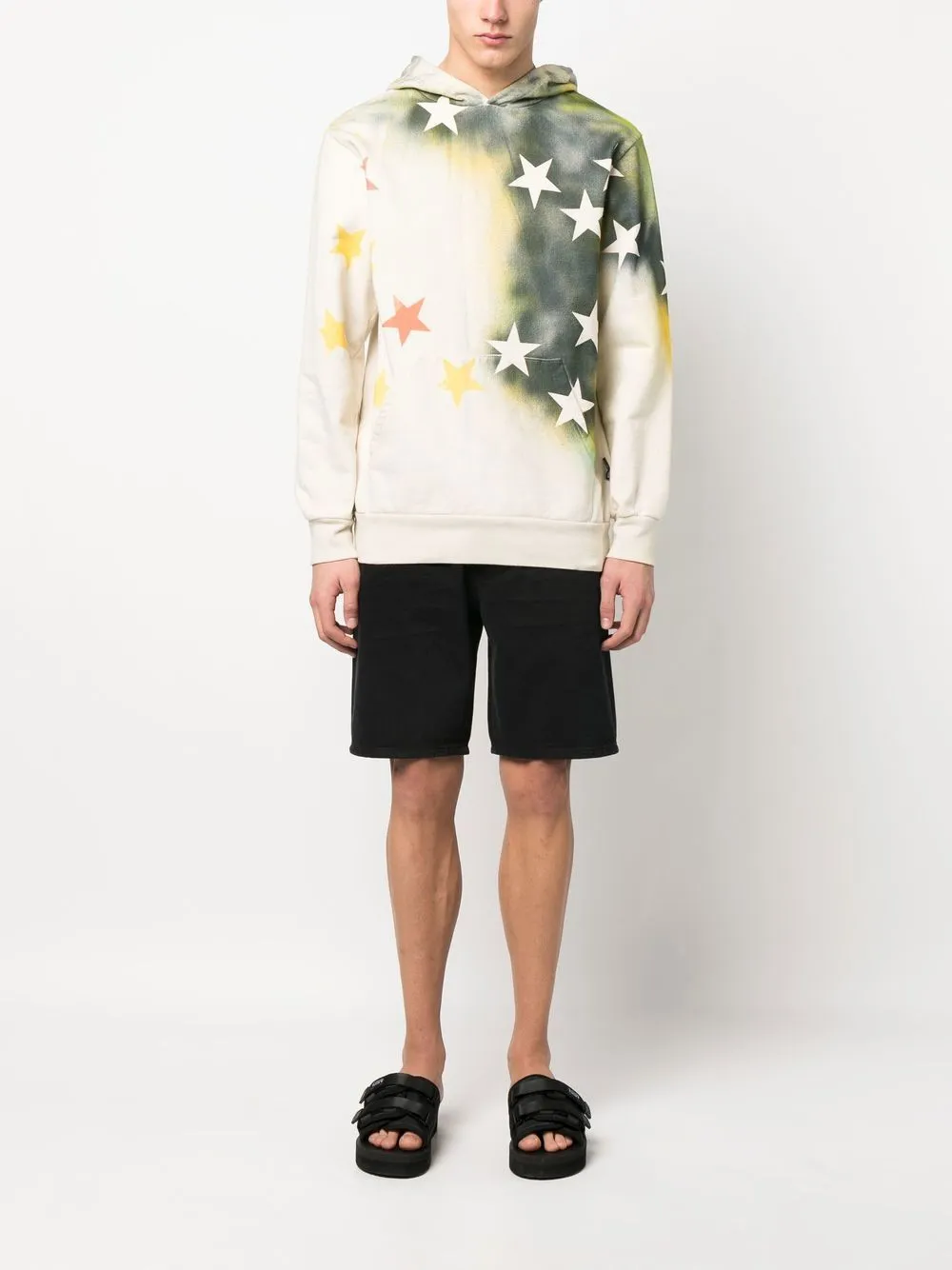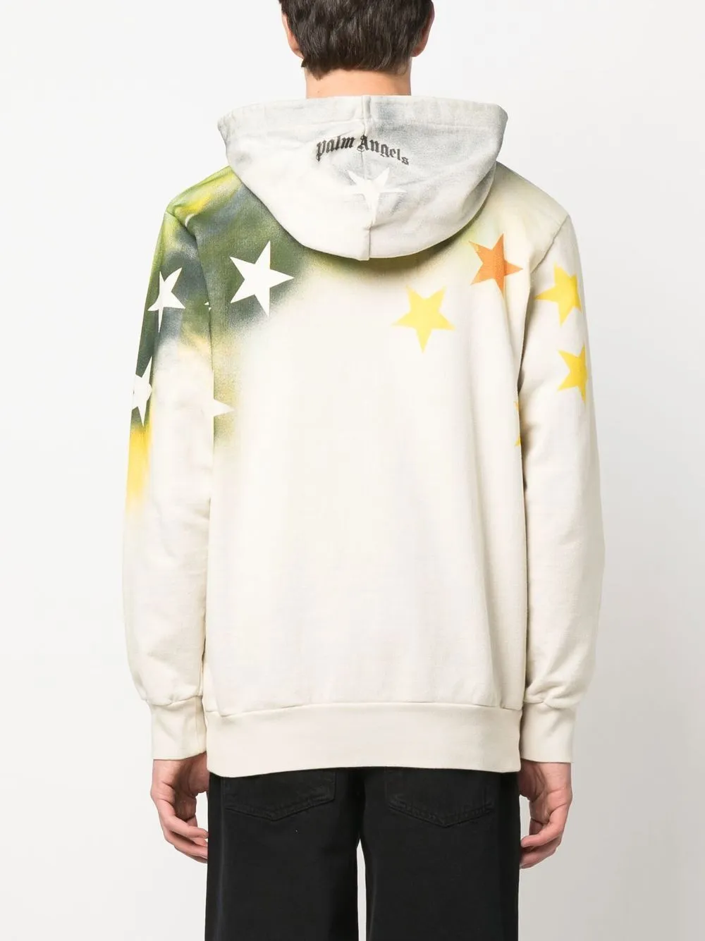 Разноцветный принт, хлопок, принт с изображением звезд, узор с эффектом разбрызганной краски, маленькая подвеска с логотипом, принт с логотипом сзади, классический капюшон, длинные рукава и карман-муфта.