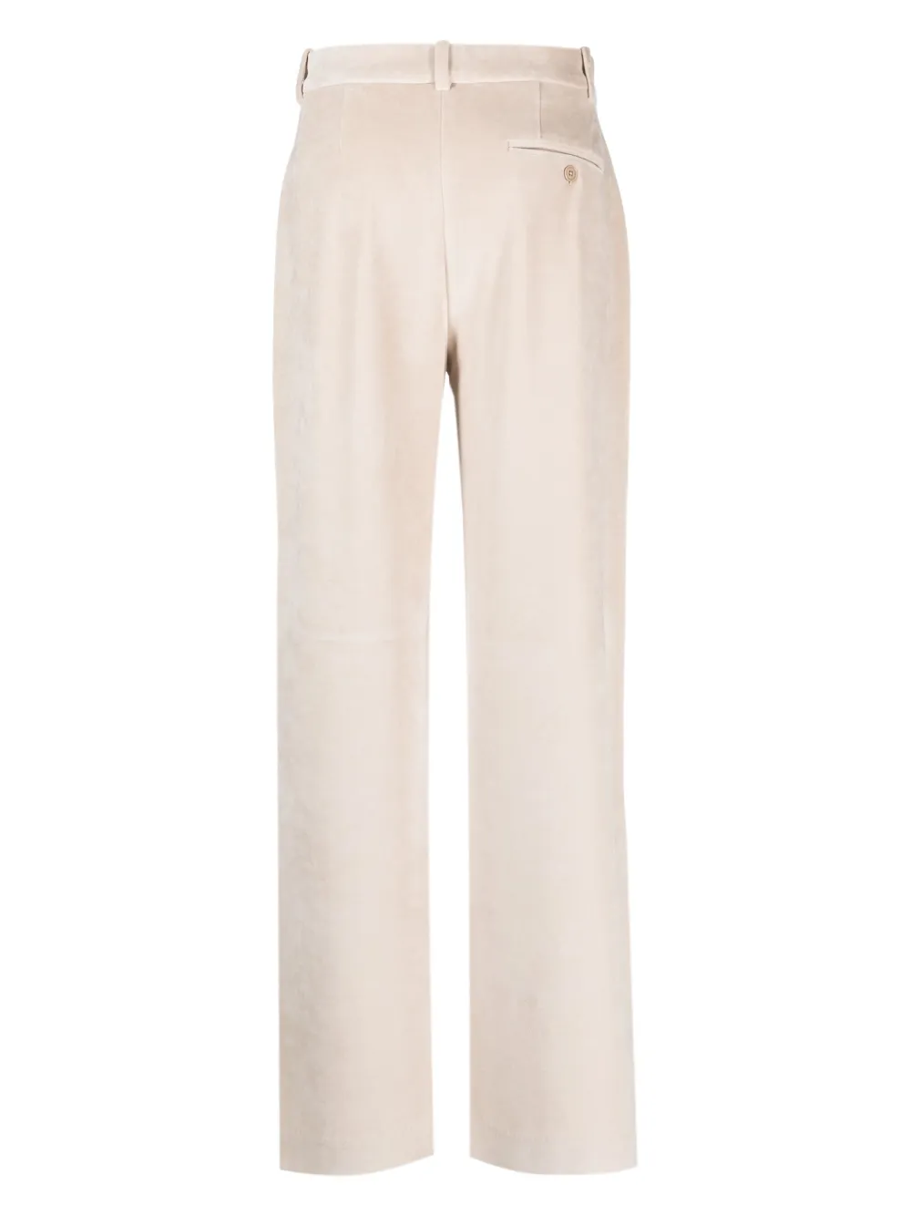 Экрю, смесовый хлопок, петли для ремня, прямой крой, потайная застежка спереди и прорезной карман на пуговице сзади.