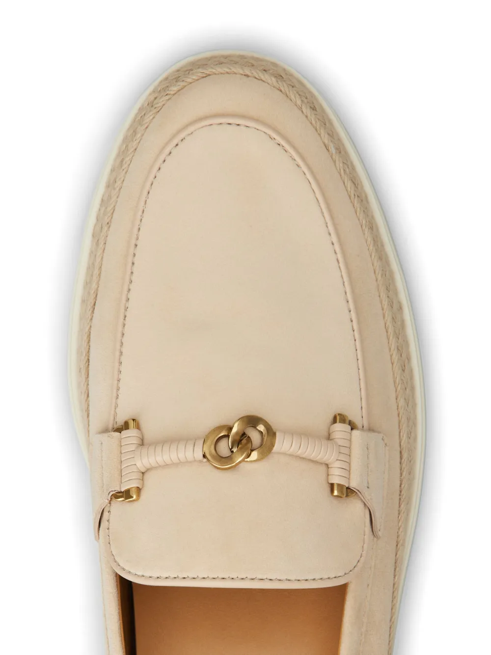 Песочно-бежевый, кожа, золотистая фурнитура, логотип на подошве, миндалевидный носок, модель без застежки, кожаная стелька с логотипом и рифленая резиновая подошва.