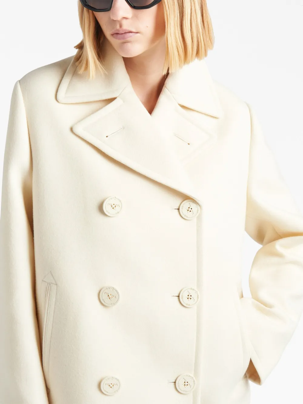 Двубортный шерстяной бушлат Prada, нейтральный 348 529₽