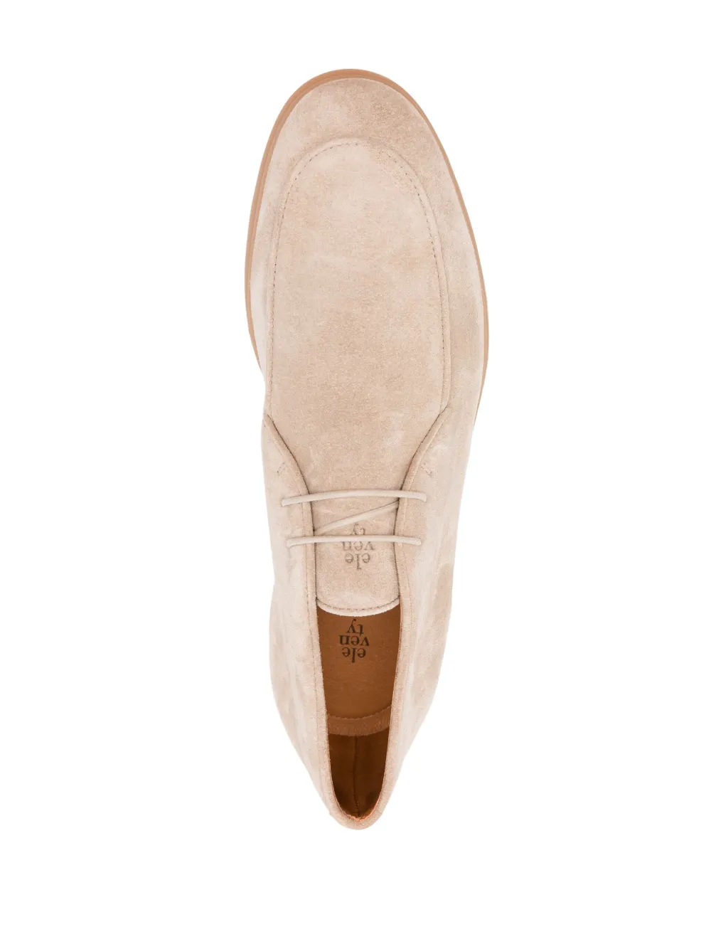 Миндальный, замша из телячьей кожи, закругленный носок, шнуровка спереди, кожаная стелька с логотипом и резиновая подошва.
