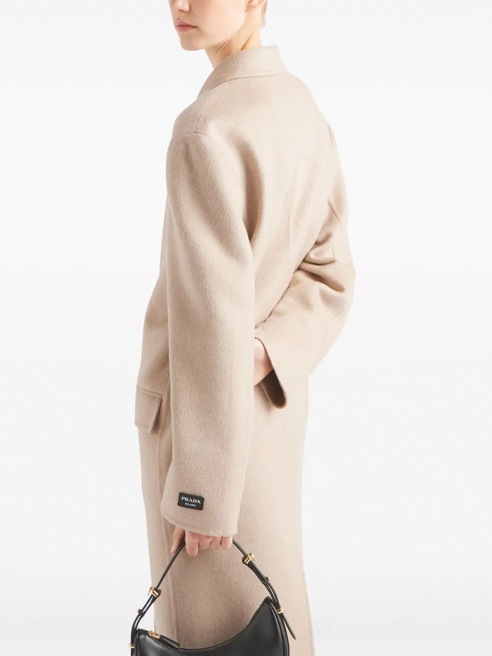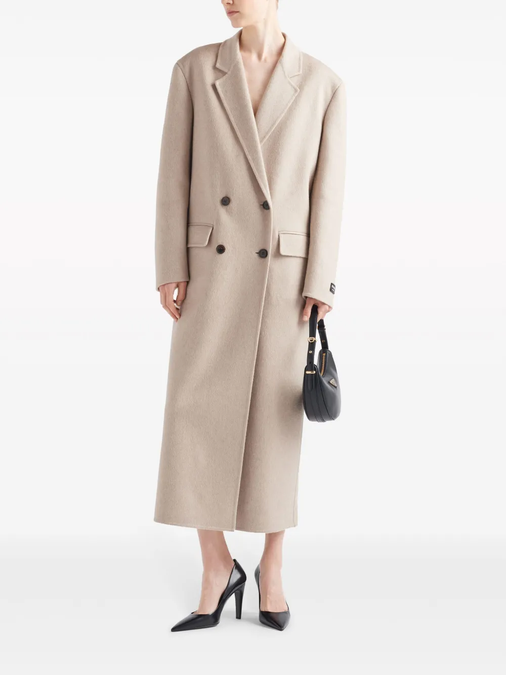 Двубортное кашемировое пальто Prada, нейтральный