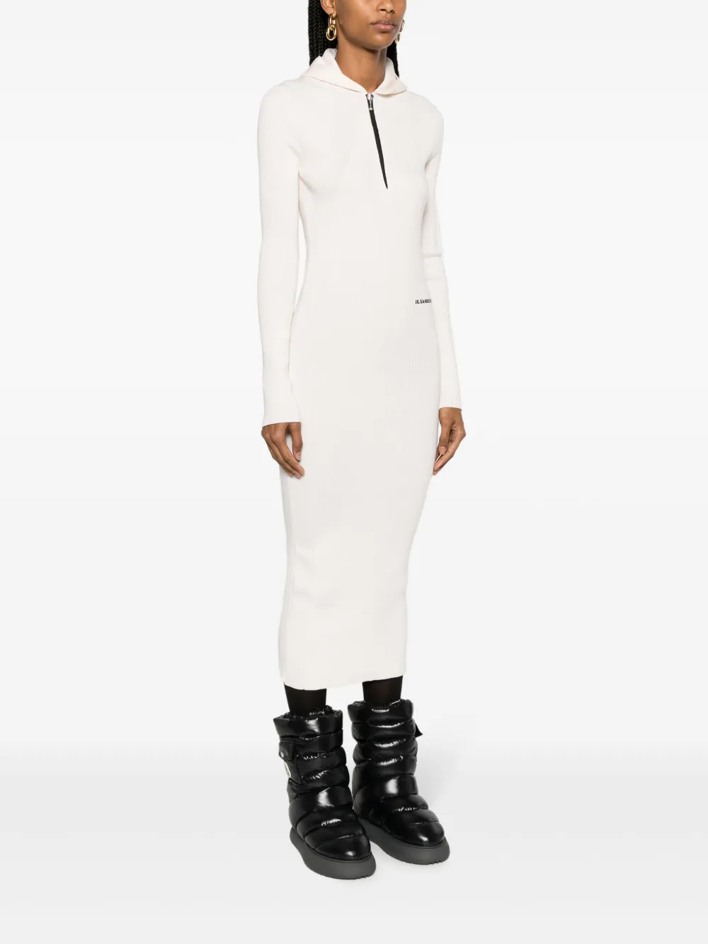 Платье миди в рубчик с логотипом JIL SANDER, нейтральный