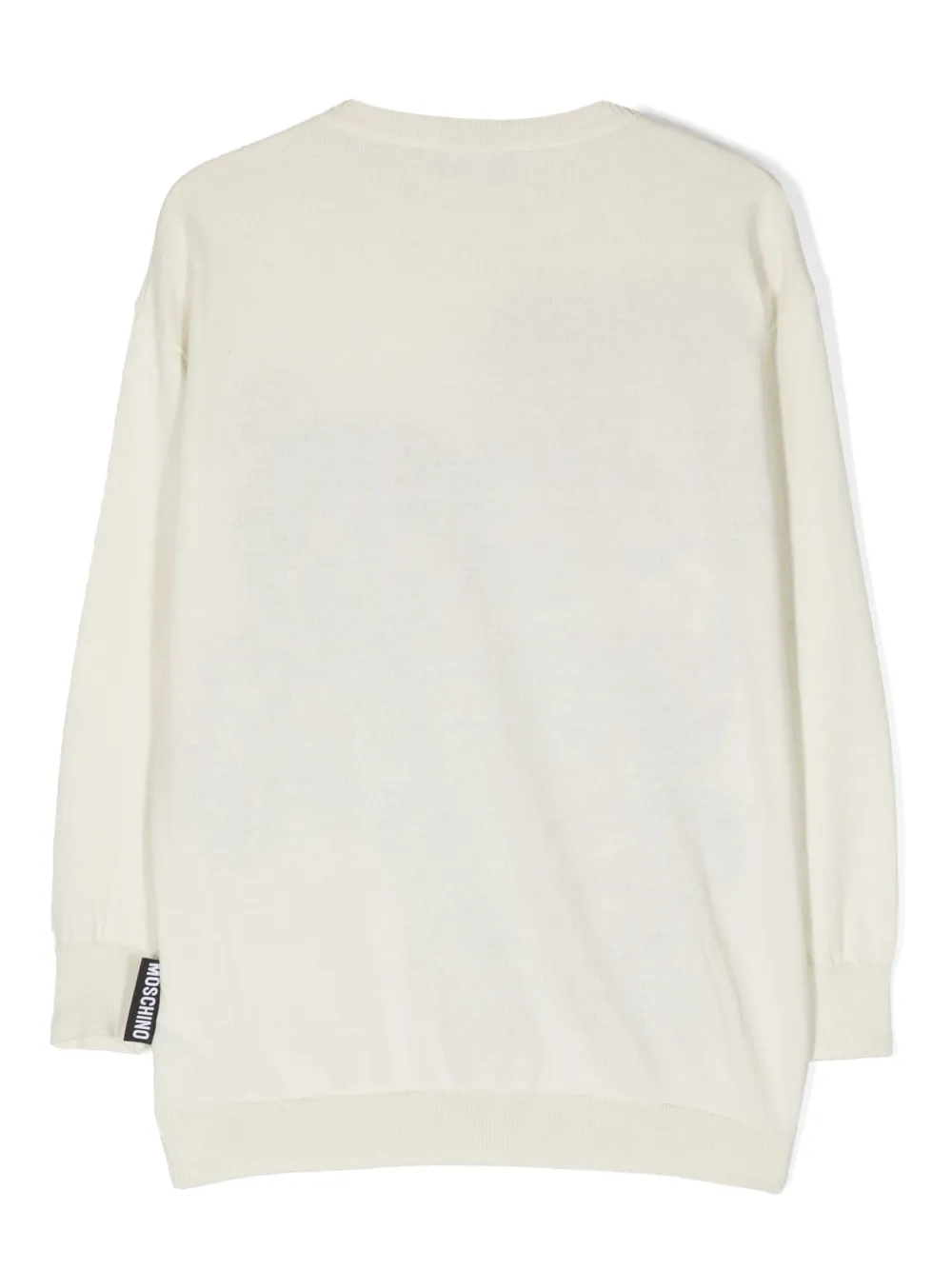 Экрю, смесовый хлопок, декор Teddy Bear, логотип в технике интарсия, бирка с логотипом, круглый вырез, длинные рукава и прямой подол.