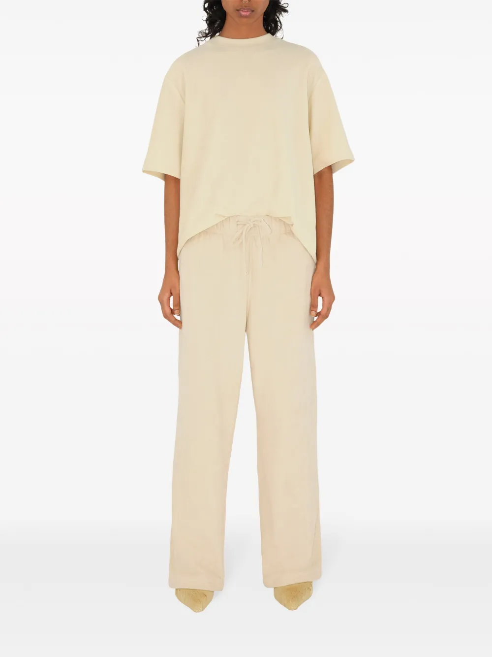 Кремово-белый, хлопок, полотенечная ткань, кулиска на талии, прямой крой, модель без застежки и прямой подол.
