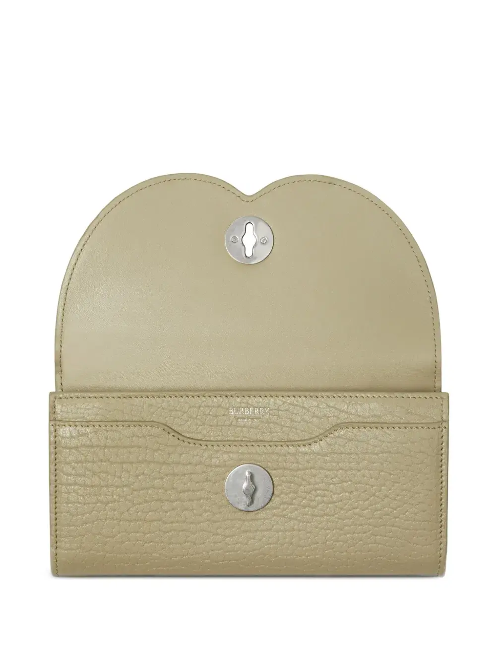 Бежевый, телячья кожа, овечья кожа, зернистая текстура, тисненый логотип внутри, застежка с поворачивающимся замком и отделение для купюр.