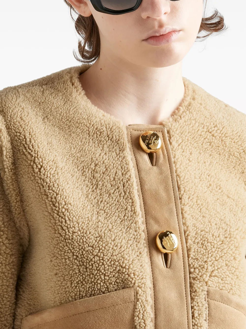 Укороченная шуба из овчины Prada, нейтральный