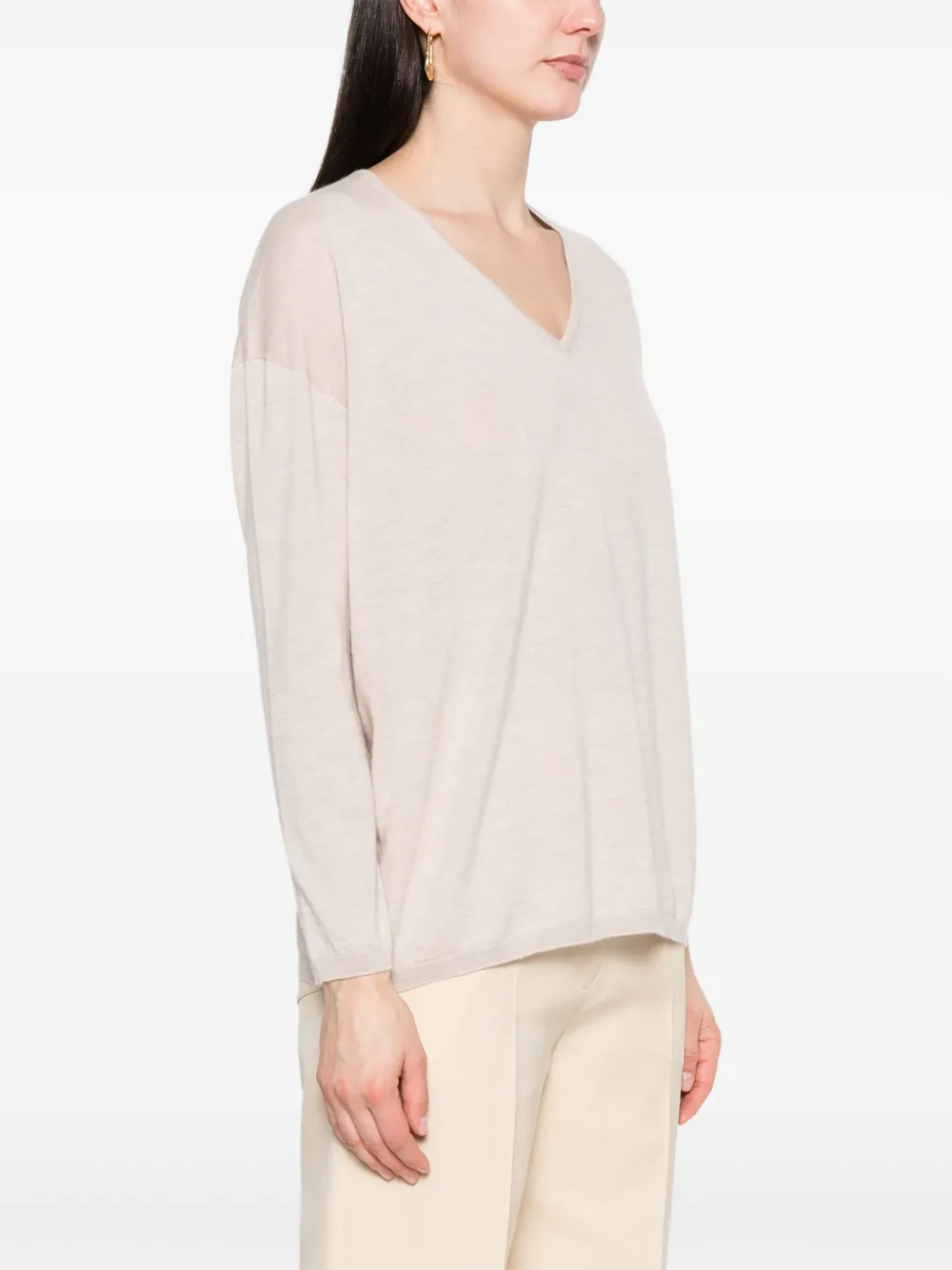 Кашемировый джемпер с V-образным вырезом MAX MARA, нейтральный