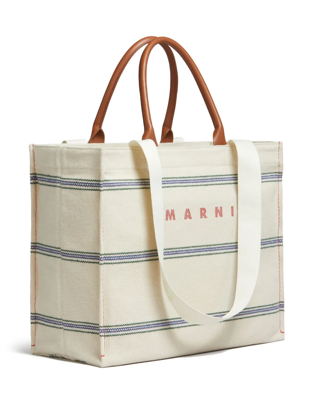 Сумка-тоут с вышитым логотипом Marni, нейтральный