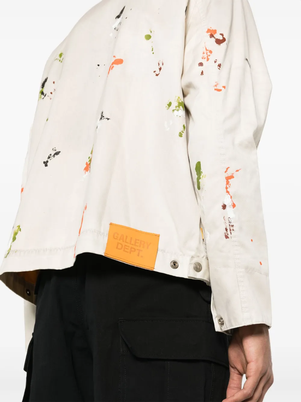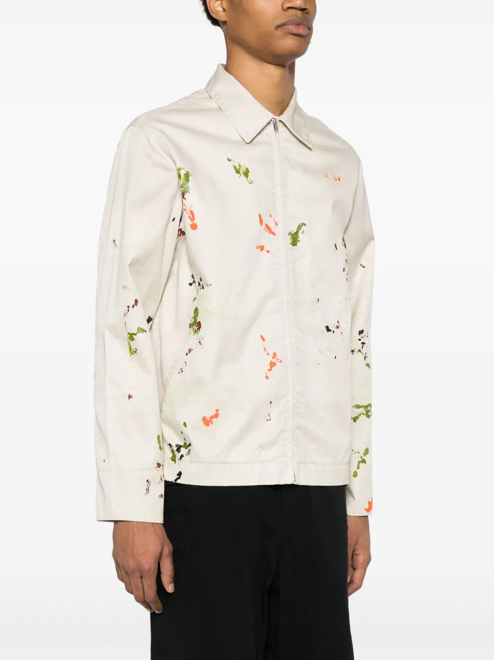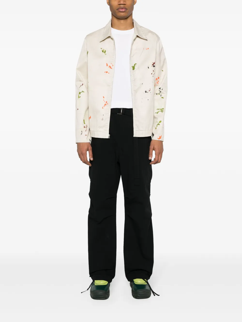 Подробнее о товаре: • светло-бежевый/разноцветный • хлопок • ткань с твиловым переплетением • эффект разбрызганной краски • вставки на поясе с декоративными кнопками • нашивка с логотипом сзади • серебристая фурнитура с выгравированным логотипом • классический воротник • длинные рукава • манжеты с застежкой на кнопки • два прорезных кармана спереди • внутренний накладной карман • потайная молния спереди • прямой подол • шелковая подкладка