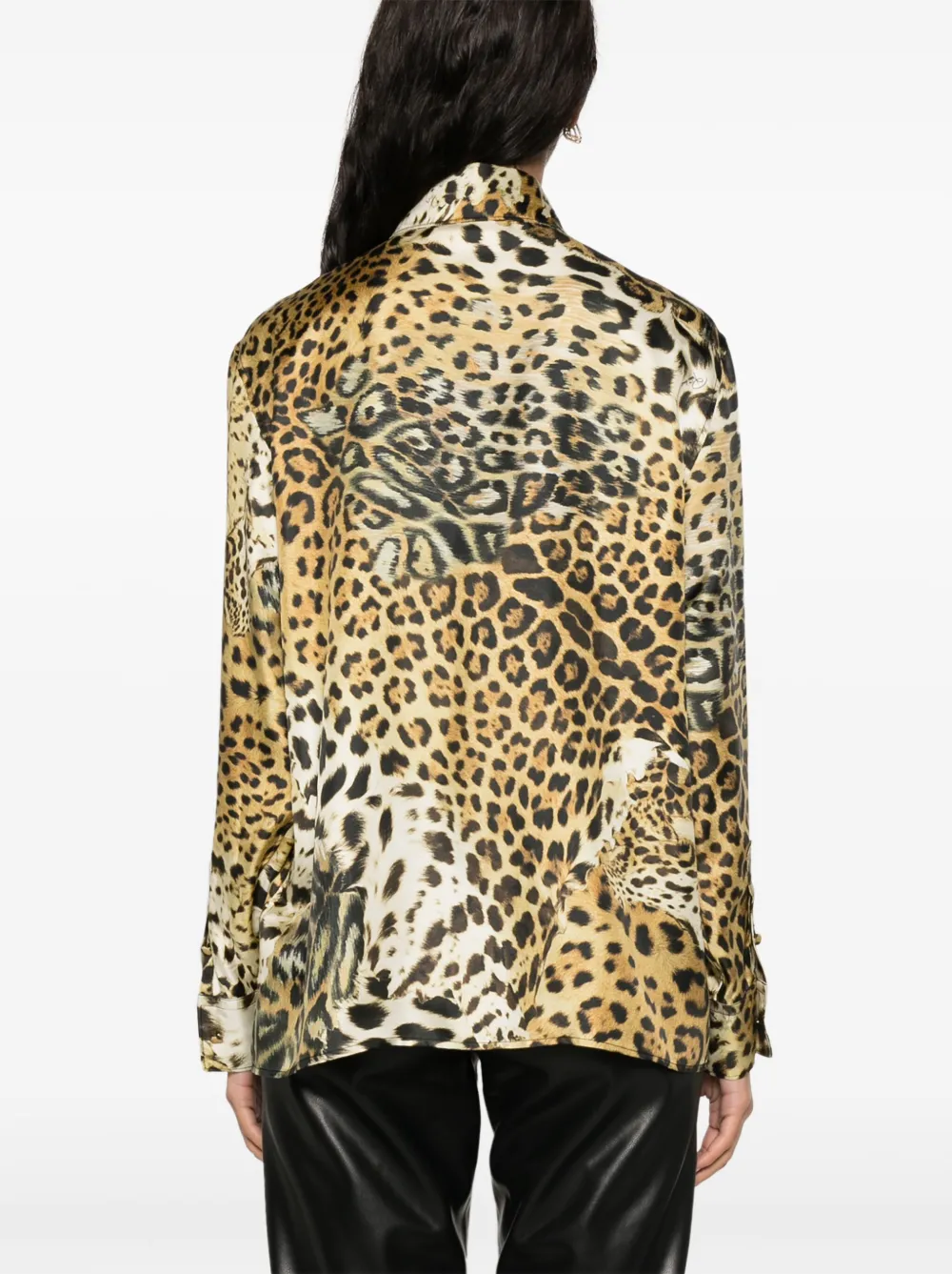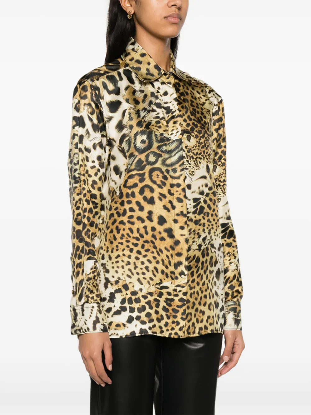 Шелковая рубашка с леопардовым принтом Roberto Cavalli, нейтральный 89 936₽