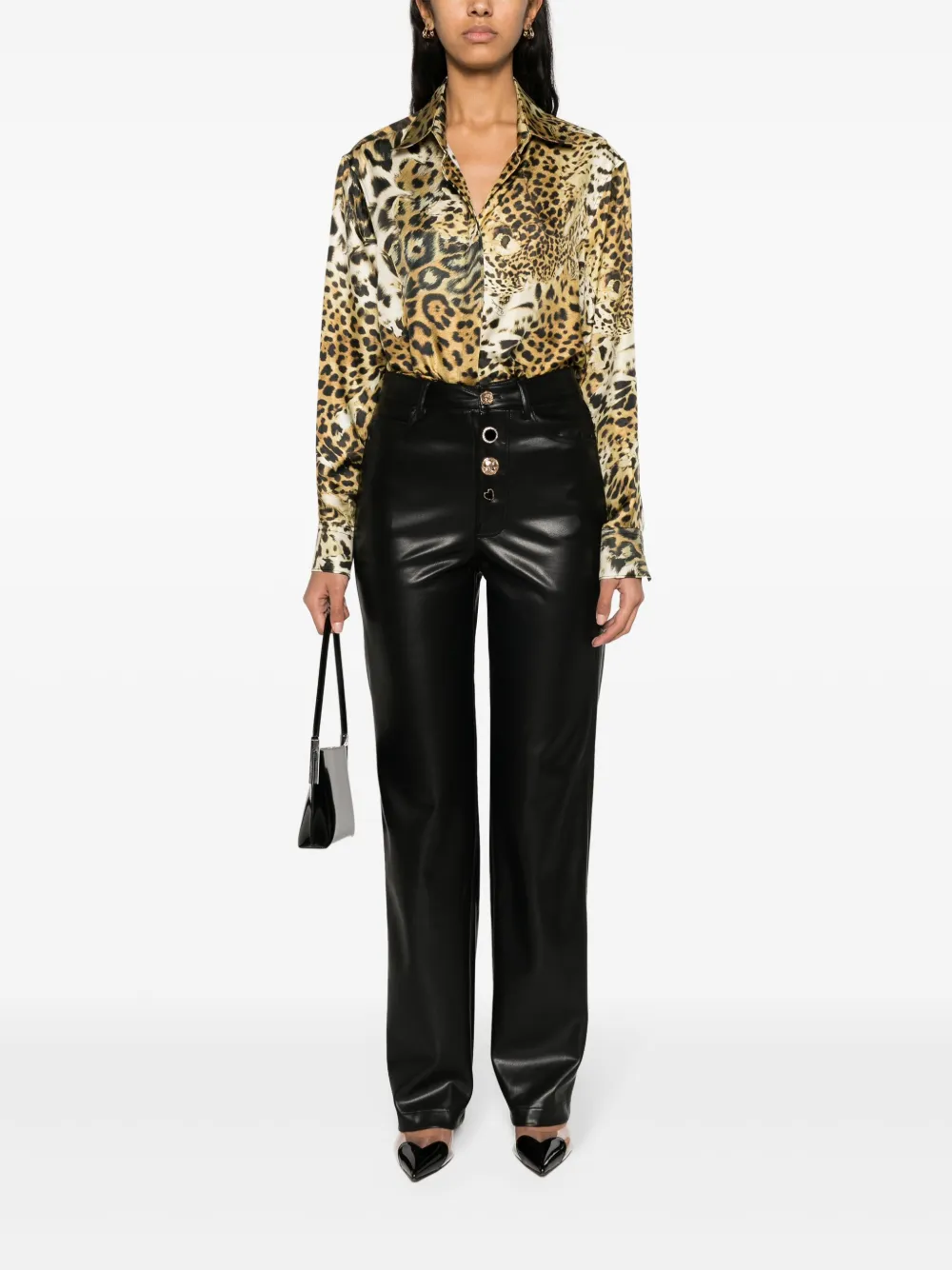 Шелковая рубашка с леопардовым принтом Roberto Cavalli, нейтральный