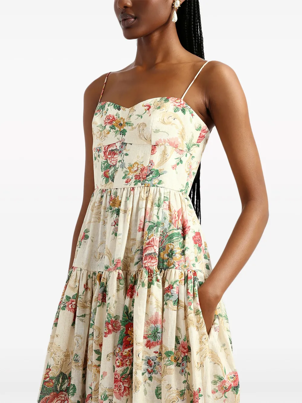 Льняное платье с цветочным принтом ERDEM, нейтральный